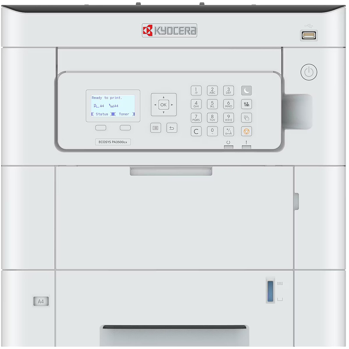 LongProductName - ECOSYS PA3500cx, Up to 35 pages per minute in A4 in colour and b/w; duplex print speed: 17.5 page per minute A4, 1200 x 1200 dpi, 394 × 531.5 × 392.5 mm