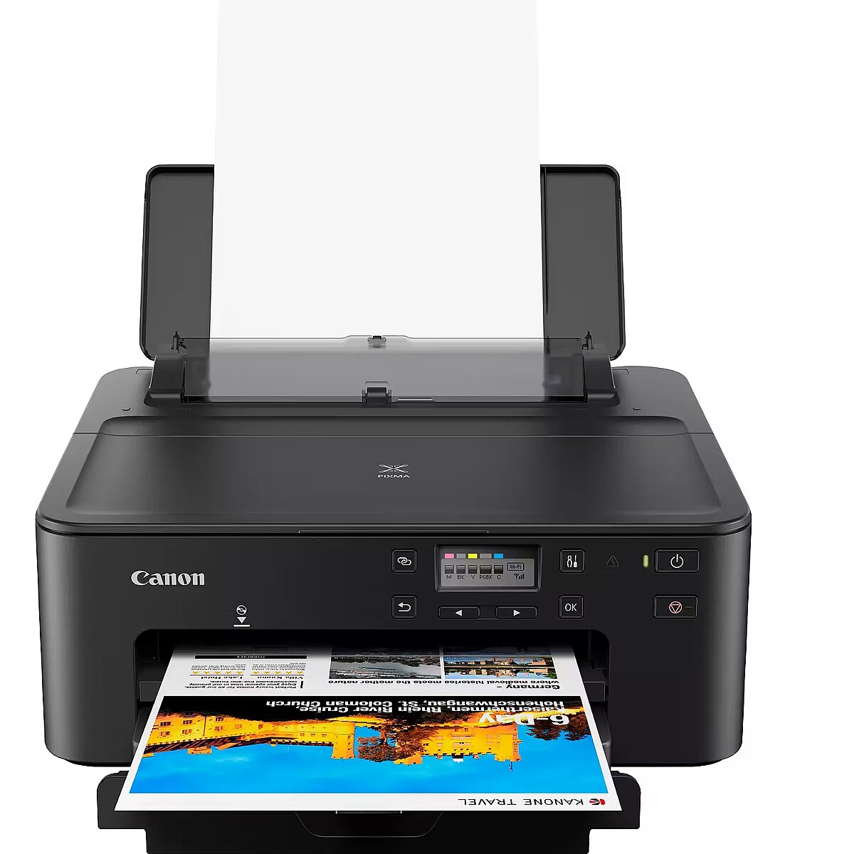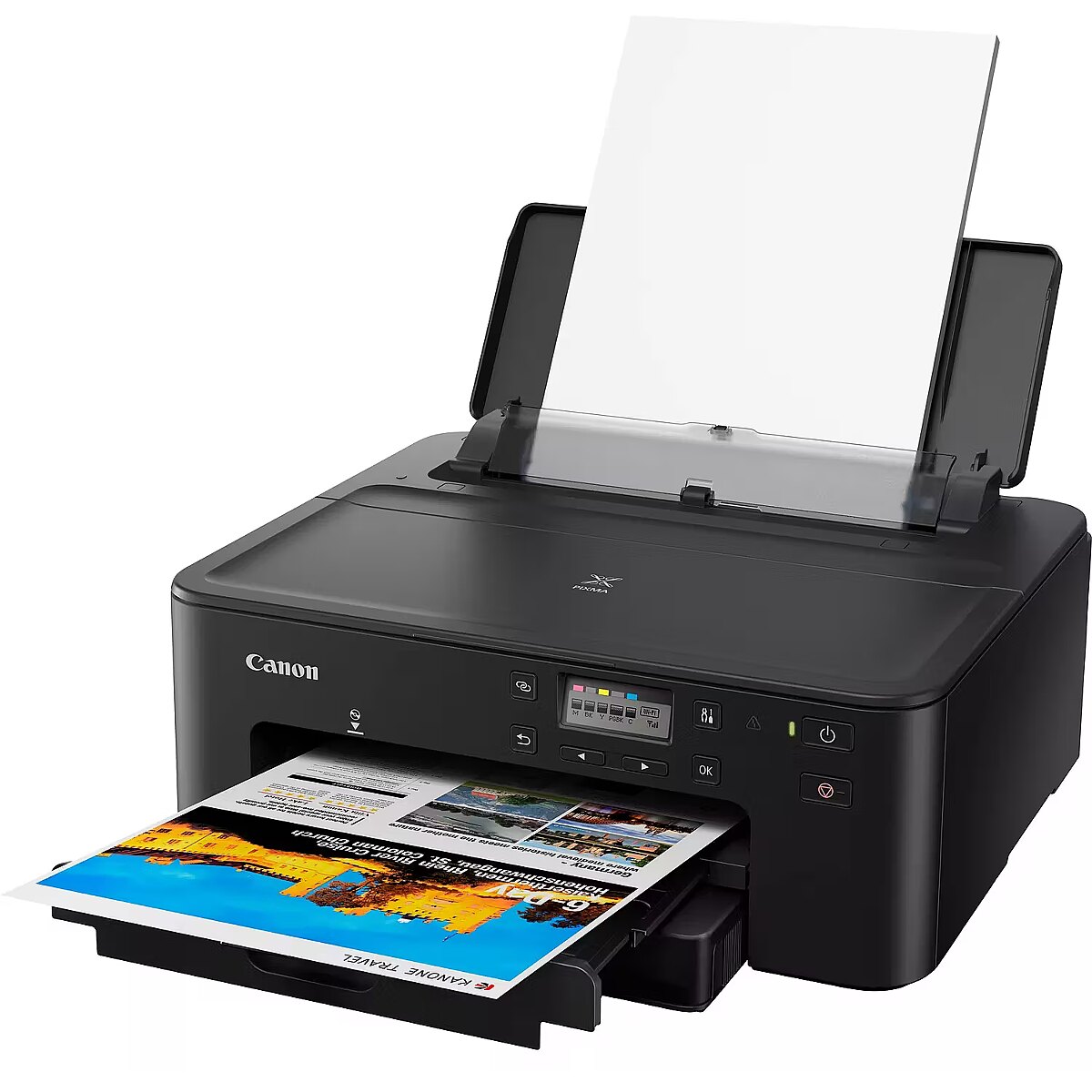 Description - This compact, affordable printer with advanced connectivity options makes it easy to use and productive at home or in the office. Compact printer with connectivity options for home or office Multifunctional, compact and affordable, Canon's smallest high-capacity 5-ink printer (350 sheets) allows you to produce professional-looking documents and high quality photos, while offering seamless connectivity. Easy connectivity You can use Ethernet, connect your laptop, PC or smart device at the touch of a button. Plus, you can print using the Canon PRINT app, AirPrint (iOS) and Mopria (Android) or Windows 10 Mobile. Business continuity With plenty of paper capacity (350 sheets) in the large capacity trays and double-sided paper feed, you can print without interruptions. The LCD display provides a quick overview of ink status, including remaining ink capacity. Work efficiently Automatic double-sided printing saves paper and high yield cartridges increase productivity. XL and XXL ink cartridges allow you to print 2 to 3 times more content than their standard counterparts. With 5 individual cartridges, you only need to change the cartridges when they are empty. Business-quality documents 5 individual inks produce crisp text and vibrant colours for professional looking business documents. Explore your creativity Get creative with several special applications and print on adhesive, magnetic or square photo paper. What's more, you can design and print nail stickers.