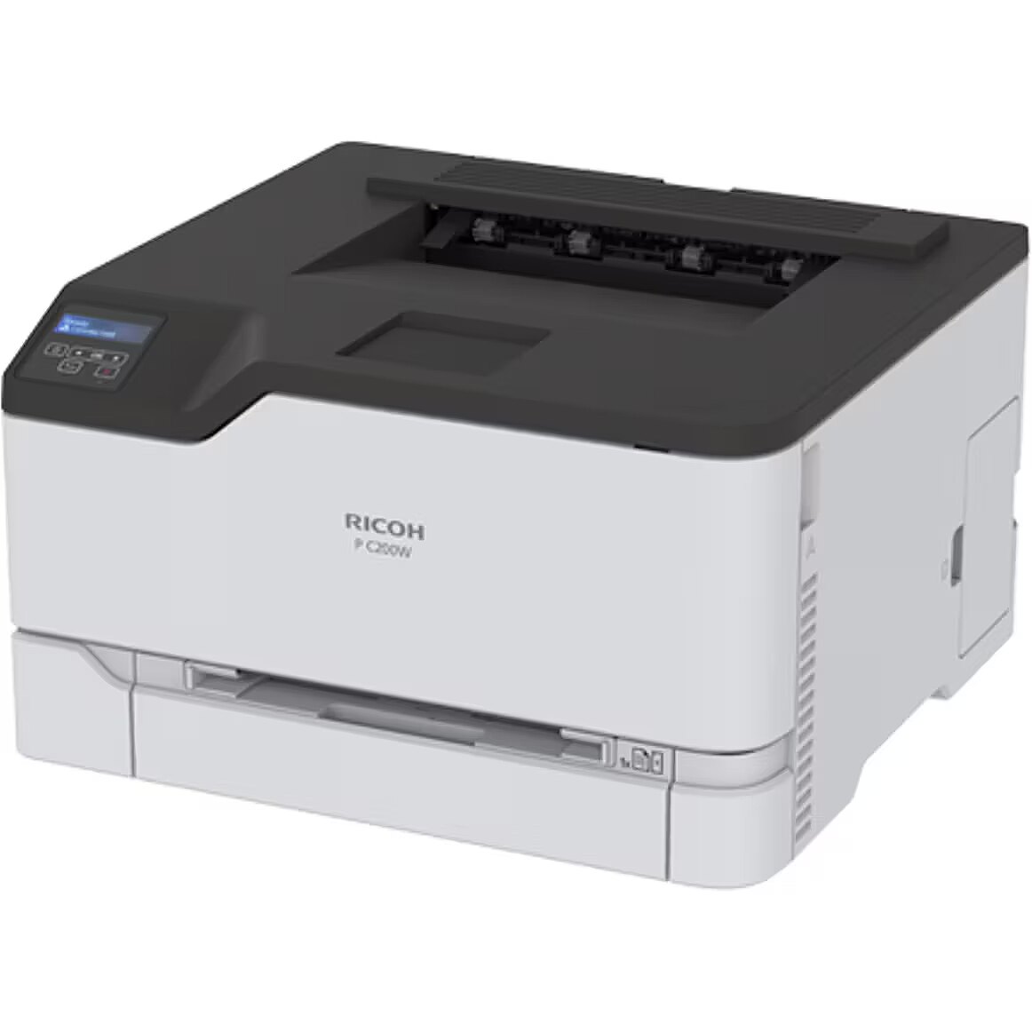 LongSummaryDescription - Ricoh P C200W. Print technology: Laser, Colour. Number of print cartridges: 2. Maximum resolution: 2400 x 600 DPI. Maximum ISO A-series paper size: A4. Print speed (black, normal quality, A4/US Letter): 24 ppm, Duplex printing. Network ready, Wi-Fi. Product colour: Black, White