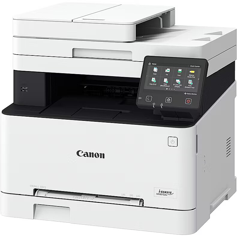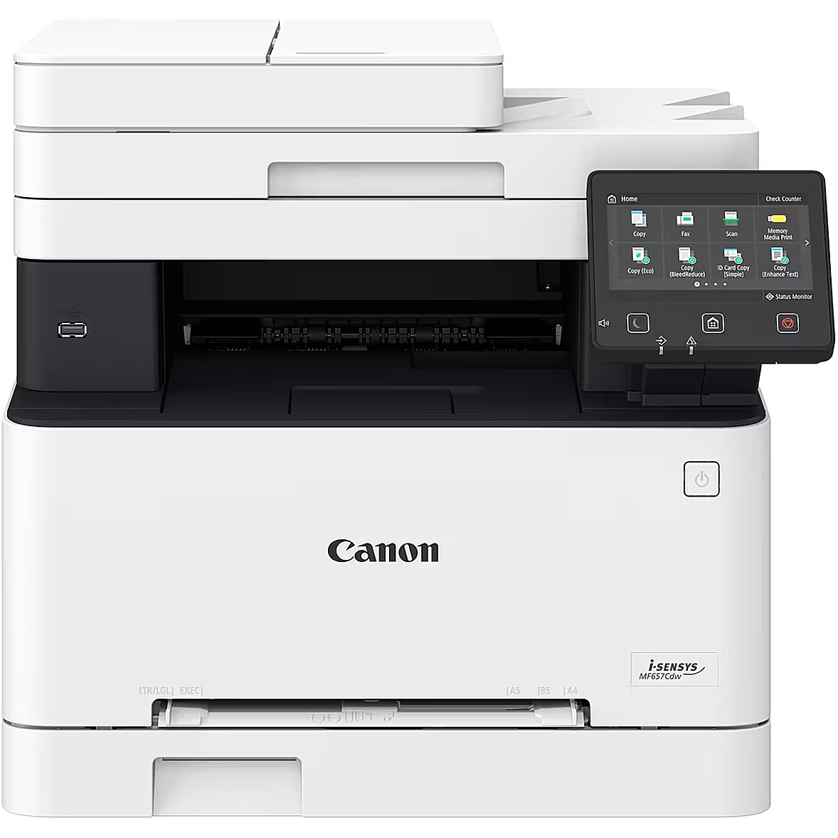 LongDesc - Canon i-SENSYS MF657Cdw Wireless Colour All-in-1 Laser PrinterMaximise print and scan productivity with the Canon i-SENSYS MF657Cdw laser printer. Extensive cloud connectivity makes it quick and easy to print and scan directly to and from popular cloud storage systems, including Google Drive, DropBox, and OneDrive. Mobile connectivity means you can also print from your phone via the Canon PRINT Business app, AirPrint (Apple) or Mopria (Android). Enhance efficiency with fast print speeds of up to 21 ppm (A4) and single-pass double-sided scanning, plus automate everyday tasks to create easy one-touch workflows. Your documents and device are protected by advanced security, which includes Secure PIN and Verify System at Startup to safeguard against external attacks.Benefits- Print and scan directly to and from cloud storage solutions, including Google Drive, DropBox, and OneDrive, with ready to go cloud connectivity- Print straight from your smartphone using the Canon PRINT Business app, AirPrint (Apple) and Mopria (Android) mobile connectivity- Safeguard sensitive documents with the Secure PIN functionality to avoid documents being printed automatically- Increase output by producing up to 3,130/2,350 pages per high yield Black/C/M/Y toner cartridge- Customise your workflows with the Application Library to automate tasks such as printing stored forms, scanning to email, and copying documents- Boost productivity with automatic duplex printing, single pass duplex scan and a large, 12.7 cm colour touchscreen- Protect your device from hacking and virus threats with Verify System at Startup- Compatible with Windows, Mac OS and Linux