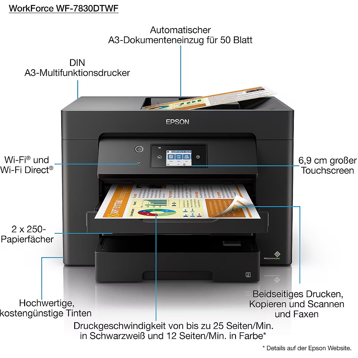 Name - T Epson WorkForce WF-7830DTWF Tinte-Multifunktionsdrucker 4in1 A4/A3 LAN WLAN WiFi Duplex ADF