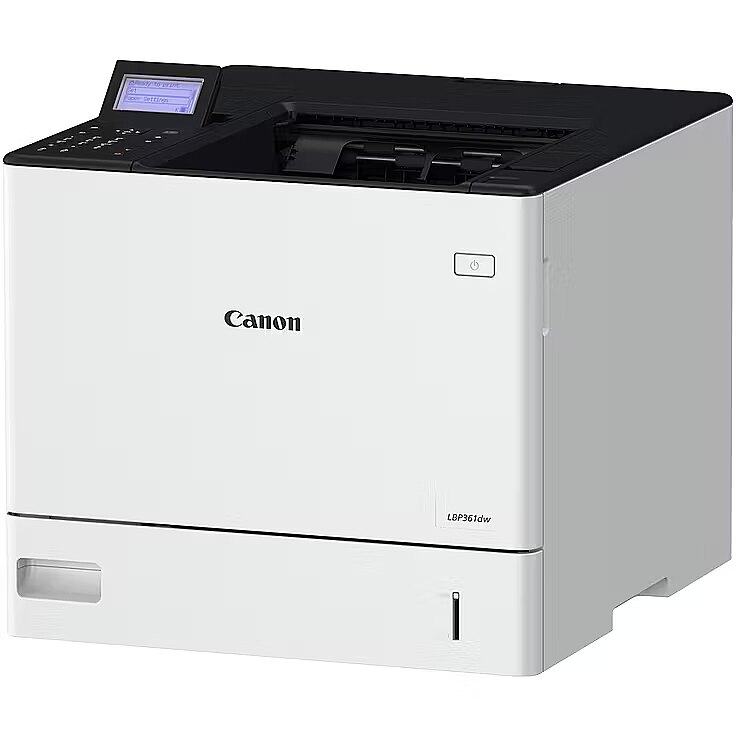 Description - Canon i-SENSYS LBP361dw The Canon i-SENSYS LBP361dw is a single-function A4 black and white printer that is ideal for increasing the productivity of active workgroups. Increase your productivity with fast, high-volume printing High printing speed (61 ppm) allows you to increase your company's efficiency. Benefit from a lightweight, compact design and robust security features to improve the quality of your printing processes. Increased work efficiency Optional additional paper cassettes (max. capacity 4,300 sheets) allow you to effortlessly feed a variety of media types and create large volumes of documents. Save time with 50 ipm duplex printing speeds and free up your energy for other tasks. Versatile printing With up to six optional paper tray and base configurations, the LBP361dw can be used as a standard desktop device or as a large, free-standing workstation. Lasting security Comprehensive security protects documents and devices against viruses and hackers. Available features include secure encrypted printing, system startup verification, and network protection. Communication Wi-Fi connectivity is available as standard. You can also easily pair devices with Wi-Fi Direct. Additionally, driver-free cloud printing is possible - all thanks to built-in support for Microsoft's Universal Print feature.
