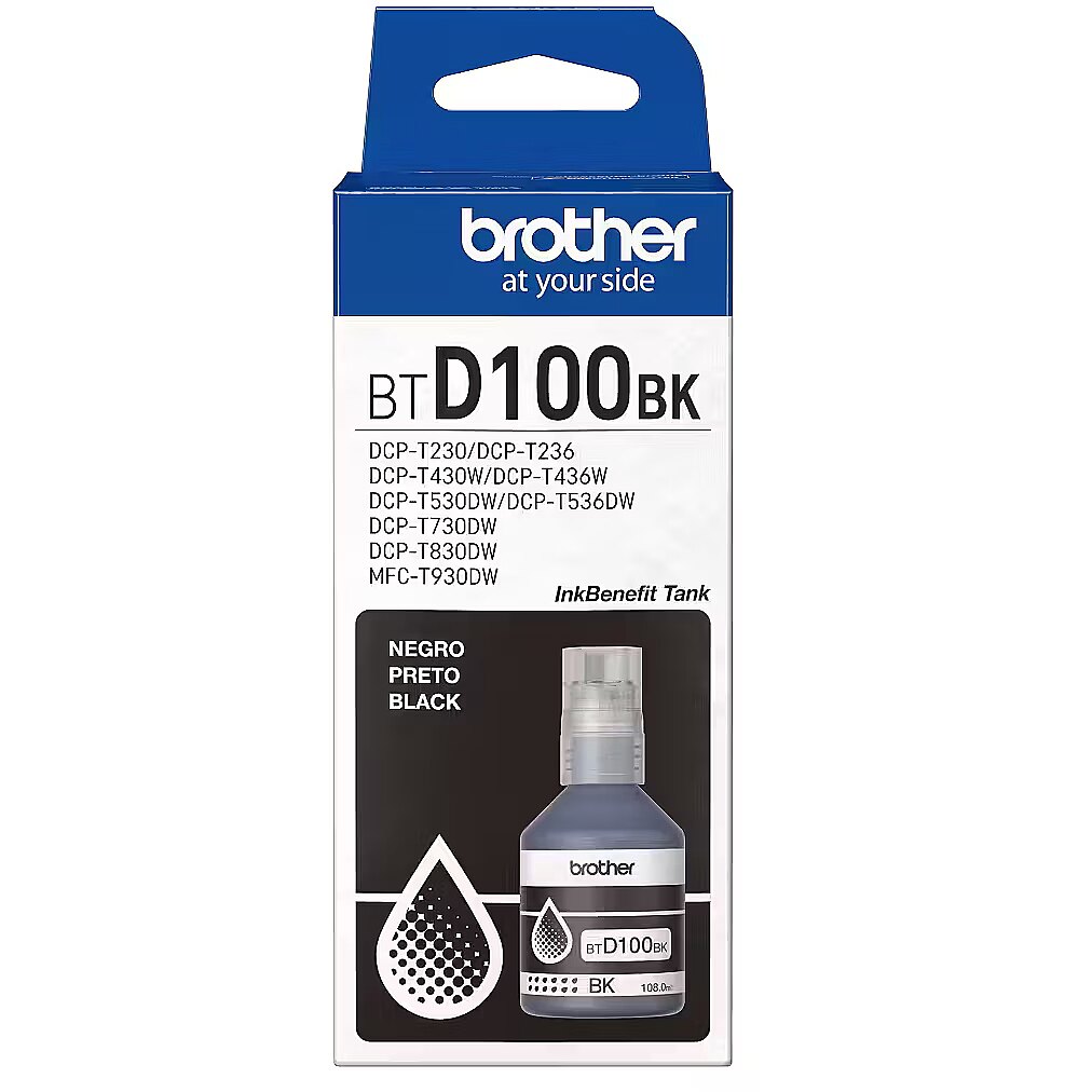 ShortSummaryDescription - Brother BTD100BK, Original, Black, Brother, MFC-T930DW, DCP-T830DW, DCP-T730DW, DCP-T530DW, DCP-T430W, DCP-T230, 7500 pages, 108 ml