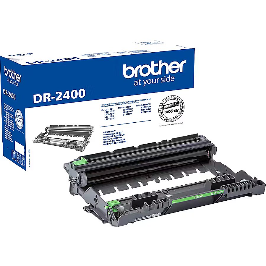 LongSummaryDescription - Brother DR-2400. Type: Original, Brand compatibility: Brother, Compatibility: HL-L2310D HL-L2350DW HL-L2357DW HL-L2370DN HL-L2375DW DCP-L2510D DCP-L2530DW DCP-L2537DW.... Width: 124 mm, Depth: 172 mm, Height: 353 mm. Package weight: 858 g. Pallet gross height: 16.2 cm, Pallet gross weight: 108 kg, Master (outer) cases per pallet: 36 pc(s)