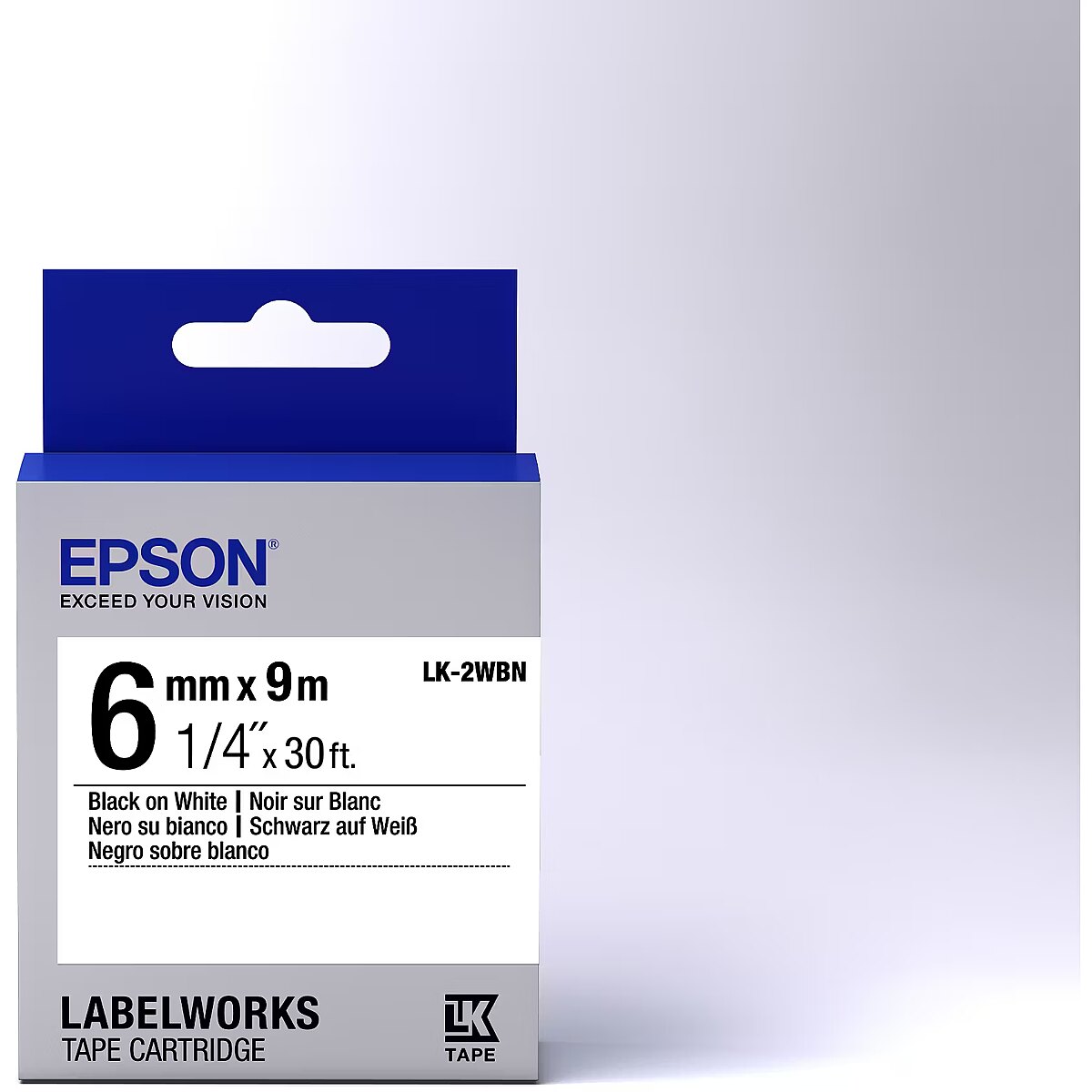 LongSummaryDescription - Epson Label Cartridge Standard LK-2WBN Black/White 6mm (9m). Label colour: Black on white, Country of origin: Japan, Compatibility: LabelWorks LW-1000P LabelWorks LW-300 LabelWorks LW-400 LabelWorks LW-400VP LabelWorks LW-600P.... Tape width: 6 mm, Tape length: 9 m, Quantity per pack: 1 pc(s). Pallet gross width: 80 cm, Pallet gross length: 120 cm, Pallet gross height: 3.18 m