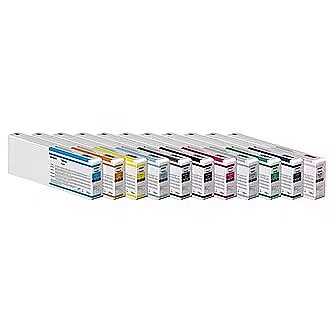 LongDesc - UltraChrome Pro12 ink is based on Epson's famous K3 and HDR ink. It has an aqueous (water based) all-pigment construction that has been designed for professional and commercial print production. The formulation provides an extended gamut with superior colour accuracy and archival level image stability.Ink dries quickly to produce prints that are water and scratch resistant. The ink set includes Vivid Magenta for brighter blues and pinks as well as Light and Dark Grey for improved balance with neutral greys, reduced bronzing and minimal colourcasts/colour twist.The Pro formulation features improved Matte and Photo Black inks that provide an enhanced Dmax for brighter prints with an enhanced tonal range in both B/W and colour. It also features a new Yellow ink that provides further durability enhancement with increased UV light resistance. With the addition of the Violet ink cartridge this ink set can offer 99% Pantone coverage.