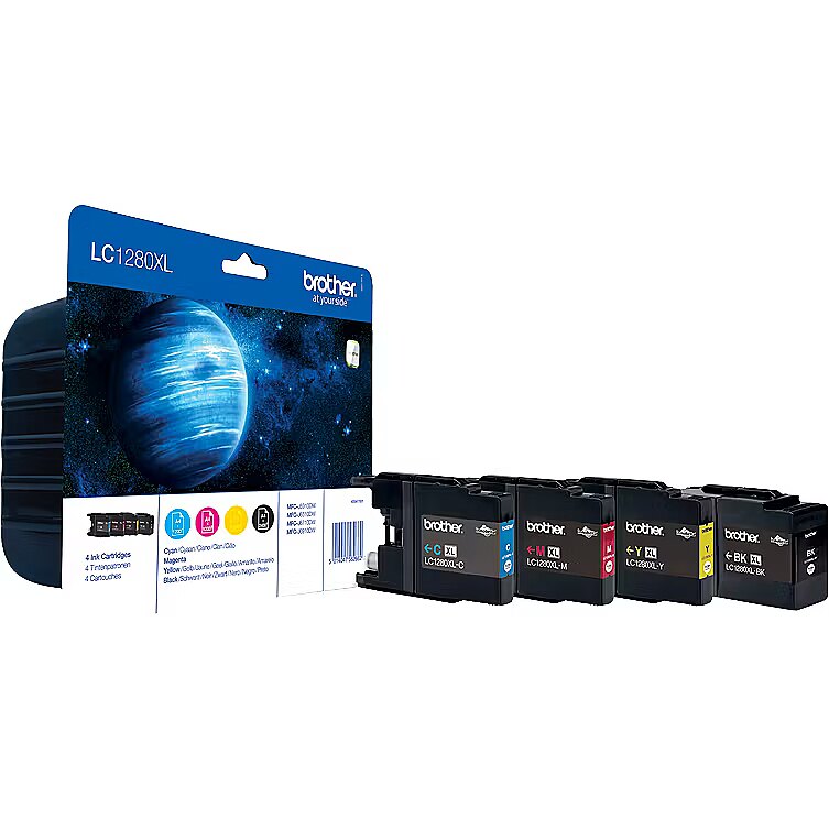 LongSummaryDescription - Brother LC1280XLVALBPDR. Supply type: Multi pack, Colour ink page yield: 1200 pages, Printing colours: Black, Cyan, Magenta, Yellow, Quantity per pack: 4 pc(s), Black ink page yield: 2400 pages