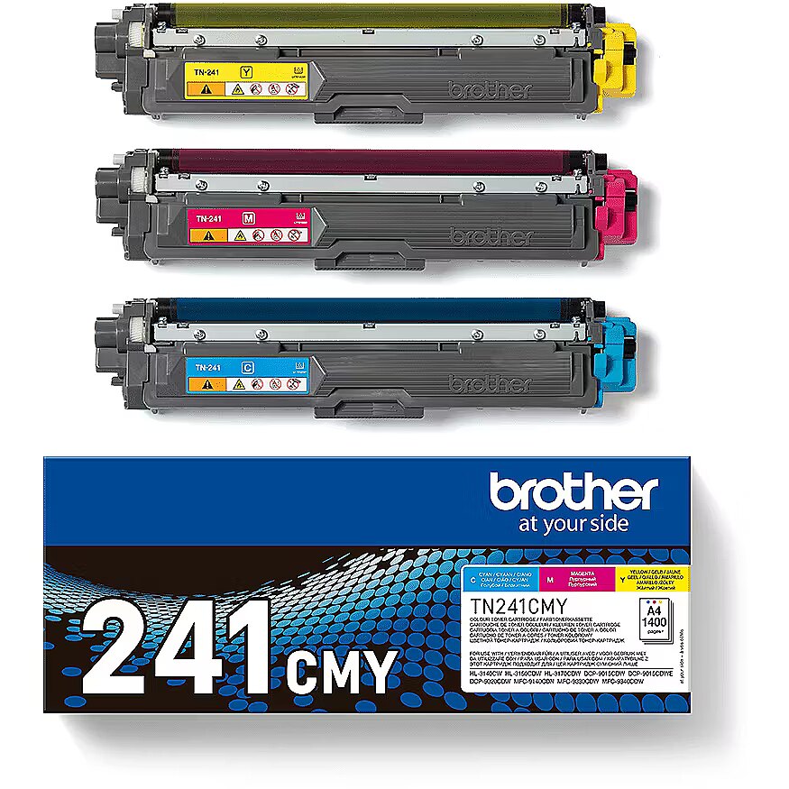 LongDesc - Designed specifically for your printer, the genuine Brother TN241CMY toner value pack, gives you the colour toner cartridges in one handy pack. You will find a cyan, magenta and yellow toner cartridge, each printing up to 1,400 pages.Compatible with a range of printers, our easy to install cartridges will help you produce long-lasting documents that won’t smudge or fade over time.Brother consider the environmental impact at every stage of your laser toner cartridge life cycle, reducing waste at landfill. All our hardware and toner cartridges are built to have as little impact on the environment as possible. Genuine Brother TN241CMY laser toner cartridges – worth it every time.
