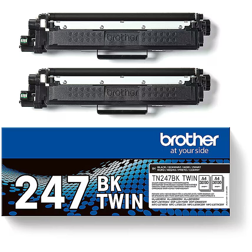 LongDesc - Designed specifically for your printer, the genuine Brother TN247BKTWIN high yield toner value pack, gives you two black toner cartridges in one handy pack, each printing up to 3,000 pages.Compatible with a range of printers, our easy to install cartridges will help you produce long-lasting documents that won’t smudge or fade over time.Brother consider the environmental impact at every stage of your laser toner life cycle, reducing waste at landfill. All our hardware and toner cartridges are built to have as little impact on the environment as possible. Genuine Brother TN247BKTWIN laser toner cartridges – worth it every time.
