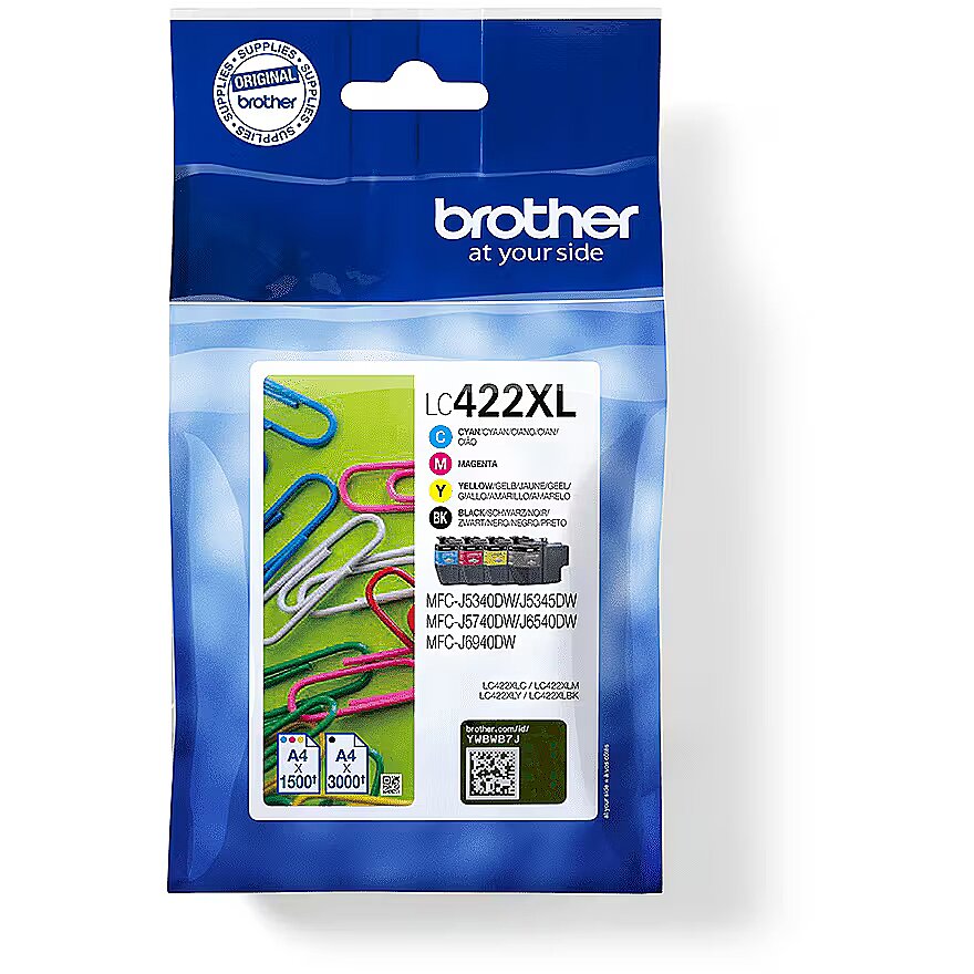 ShortSummaryDescription - Brother LC422XLVAL, Black, Cyan, Magenta, Yellow, 4 pc(s), 3000 pages, 1500 pages, Multi pack