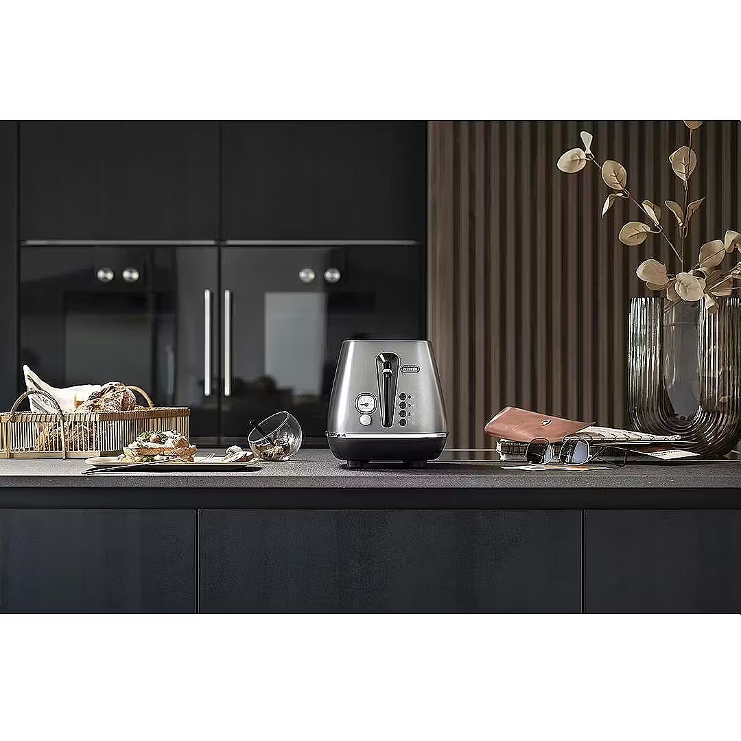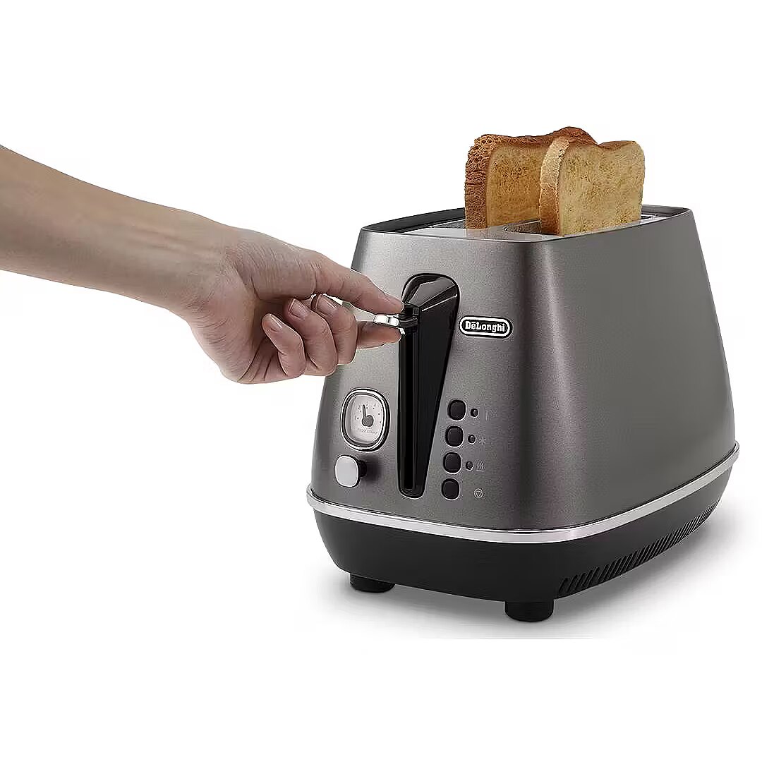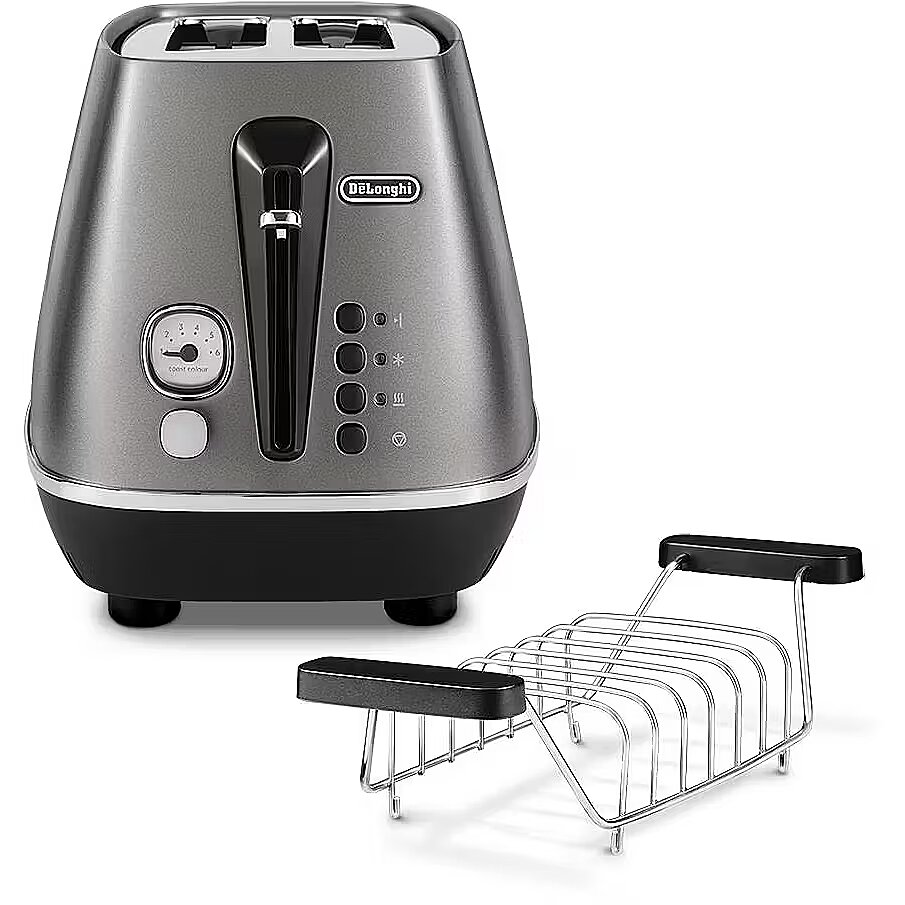 The Distinta Titanium toaster adds elegance and style to your kitchen while offering versatile functions for everyday use. Toast your bread just the way you like it with the 6-level electronic browning control. The extra lift position makes removing small slices safe and easy. • Integrated electronic controls for reheating and defrosting