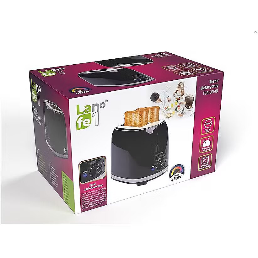 Description - Toster elektryczny marki LAFE TSB003B jest urzÄdzeniem, ktĂłre kaĹźdy amator grzanek powinien mieÄ. W prosty i szybki sposĂłb robi tosty, ktĂłre wszyscy tak lubimy. Prosty w obsĹudze oraz w czyszczeniu uĹatwi kaĹźdemu codzienne przygotowania w kuchni.Toster Lafe wyposaĹźony w podstawowe funkcje z pĹynnÄ regulacjÄ temperatury grzania, ktĂłra pozwala na opiekanie tostĂłw wedĹug wĹasnego uznania. Funkcja "STOP" pozwala w kaĹźdej chwili wyĹÄczyÄ toster. W tosterze mieszczÄ siÄ na raz dwie kromki. Produkt posiada rĂłwnieĹź bardzo przydatnÄ tackÄ na okruchy, dziÄki ktĂłrej czyszczenie jest bardzo proste. Dodatkowo nasze urzÄdzenie posiada funkcjÄ rozmraĹźania " Defrost" oraz funkcjÄ podgrzewania " Reheat", ktĂłre moĹźna uruchomiÄ przyciskami na panelu bocznym. ROZMRAĹANIE TOSTĂW