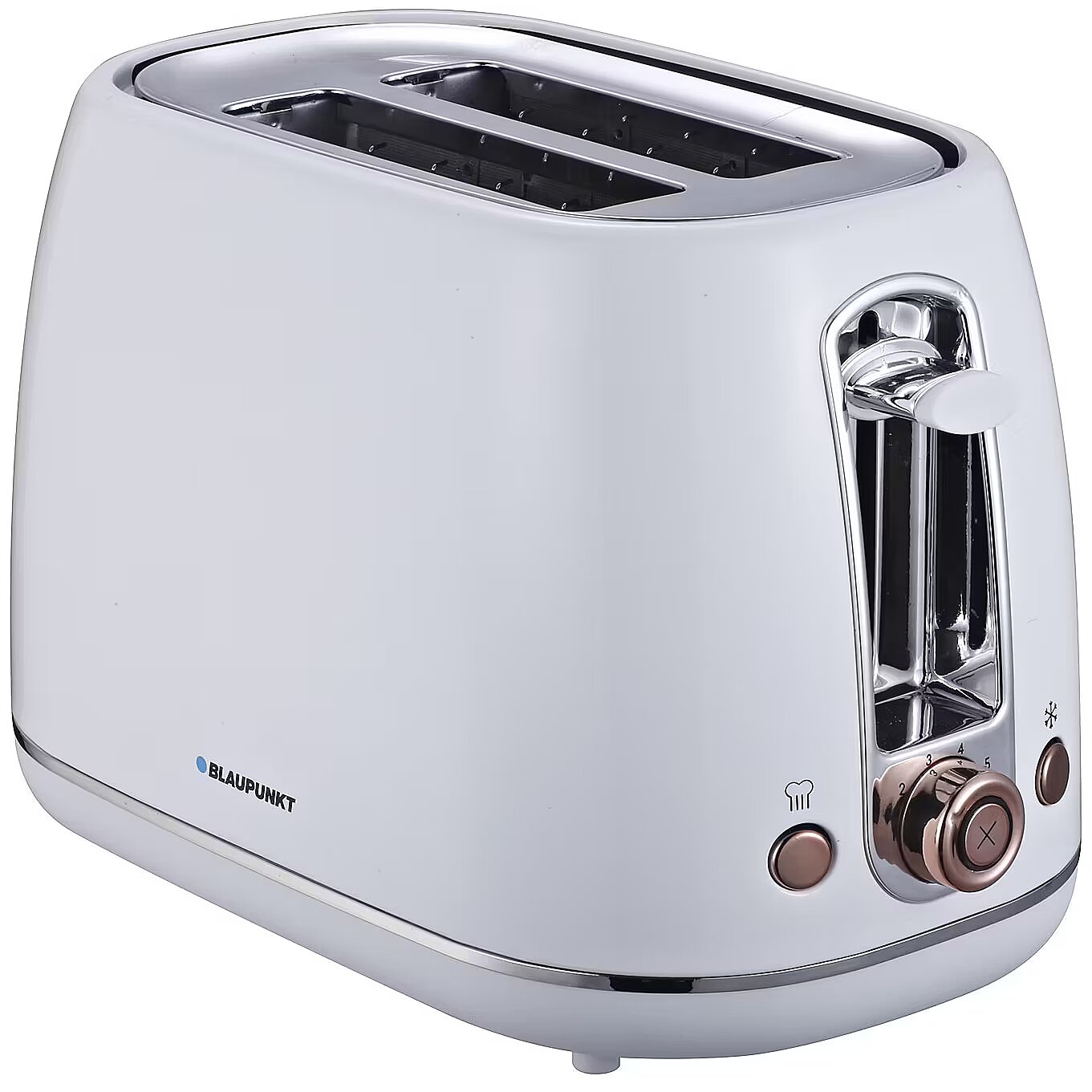 Description - TSS802WH toaster Breakfast that includes crispy, fragrant and browned toast tastes the best. There are as many ways to prepare them as there are household members, but they have one thing in common: they will diversify and make every breakfast more enjoyable. In addition to your own recipe for preparing them, you also need a good quality toaster, which is increasingly an element of kitchen equipment. The TSS802WH toaster by Blaupunkt is a device that not only stands out for its eye-pleasing, subdued appearance enhanced with modern accessories, but also fulfills its function in preparing tasty, perfectly baked slices of your favorite bread. The TSS802WH model has two wide bread pockets (33 mm) and a roll warmer, thanks to which the user can toast large pieces of bread and rolls without having to cut them, as well as heat their favorite croissant. Using this device, you can also defrost and reheat bread, which is especially useful when in the morning you realize that your favorite bread is no longer in the bread box. The comfort of use is complemented by a 7-step, smooth, electronically controlled toasting time adjustment, which allows you to prepare toast exactly as a given household member likes it. Electronic toasting control and three status indicators guarantee always fresh, properly toasted, crispy and aromatic sandwiches. The automatic centering function, regardless of the shape and size of the bread, allows the toaster to position the slices in such a way that they brown equally on all sides. The TSS802WH model has non-slip, rubberized pads, thanks to which it holds stably even on very slippery surfaces. The crumb tray helps keep things tidy, and the compact size and ability to roll up the cable make it much easier to store.