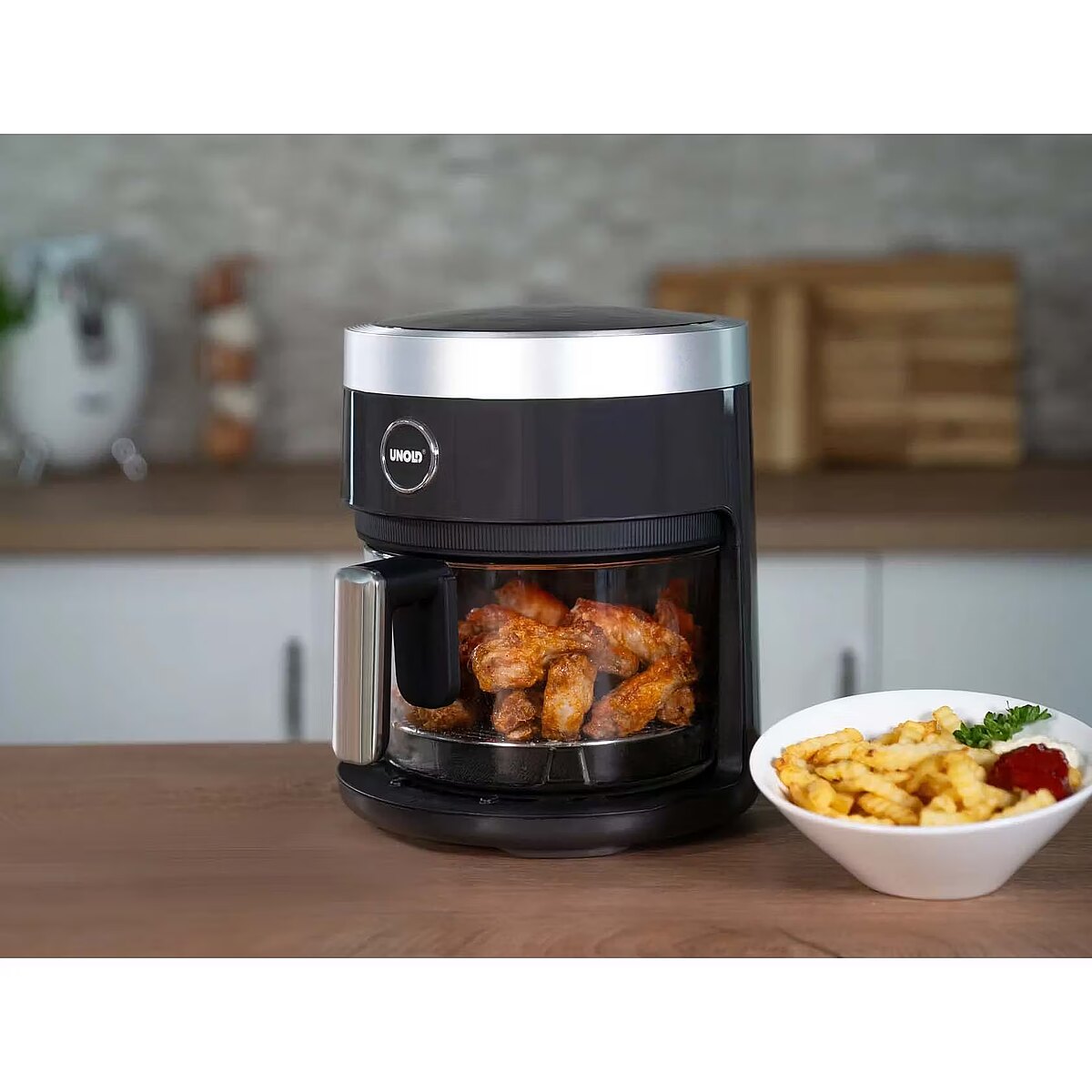 Unold hot air fryer glass 58695 (stainless steel (brushed)/black, 1,200 watts)