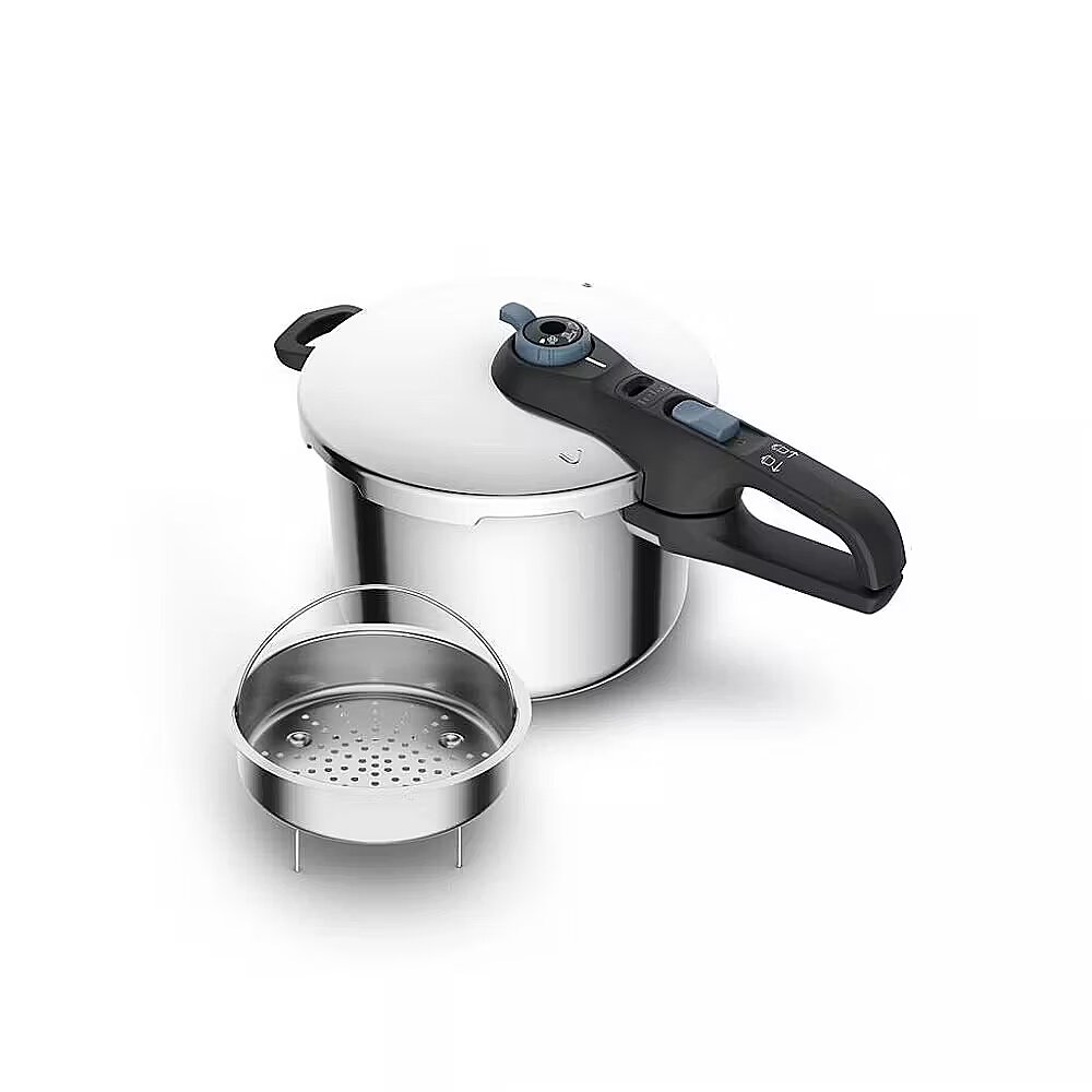 Description - Secure Trendy Pressure Cooker 8L P2584401 Pressure cooker for economical cooking and simmering Extreme pressure and high temperature reduce cooking time, saving energy 2 cooking programs for faster cooking of meat or preserving the nutritional value of vegetables Slow cooking preserves most vitamins, minerals, and nutrients, making food not only delicious but also healthy Safe steam release during cooking Three-layer sandwich base with an inner aluminum core ensures excellent heat distribution Five-level safety system guarantees exceptionally safe pressure cooking Steaming basket included Easy to use, easy to maintain, and easy to clean The pot itself is covered by a 10-year manufacturer's warranty Suitable for all hob types, including induction, and dishwasher safe (except for the lid)