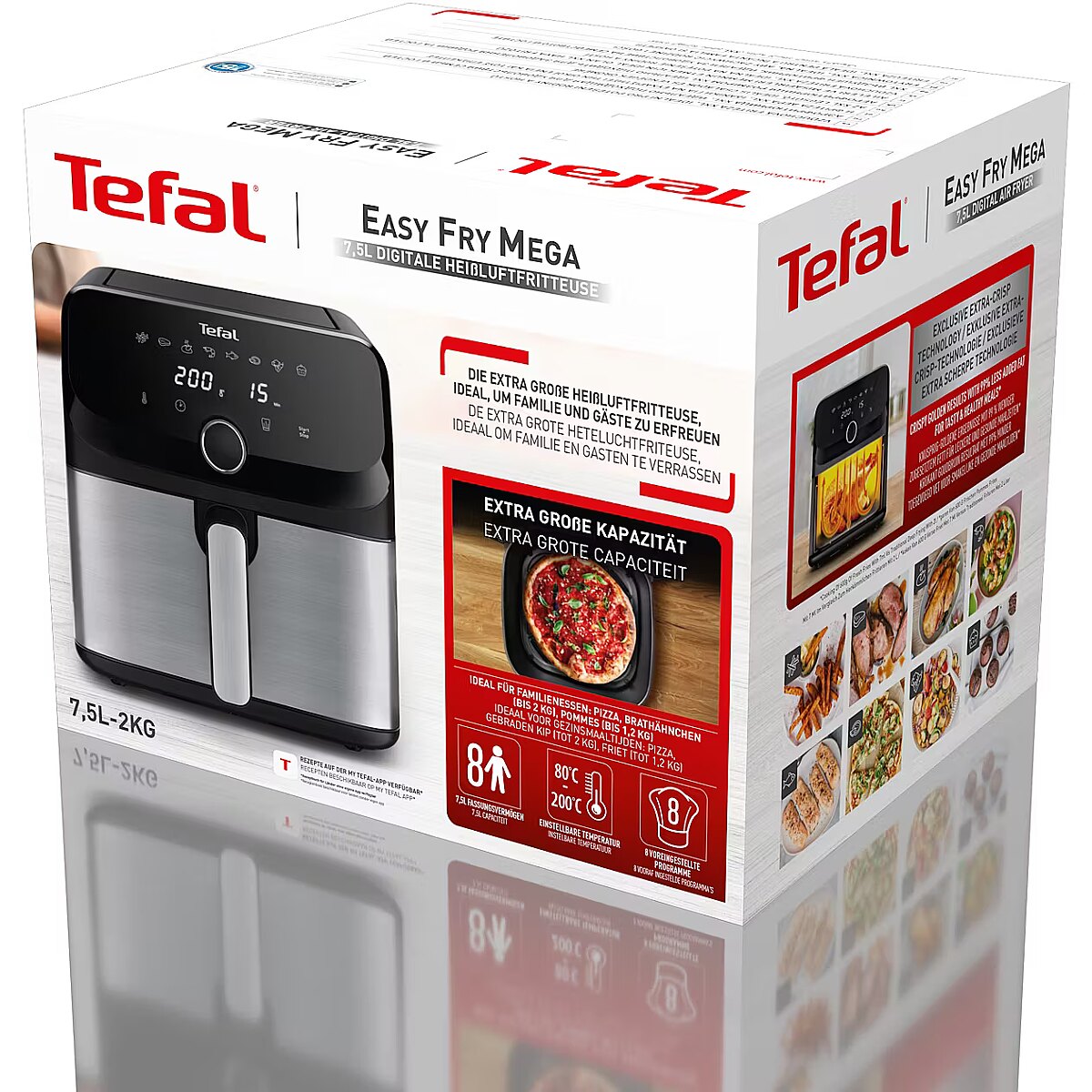 ShortSummaryDescription - Tefal Easy Fry Mega EY855D10, Hot air fryer, 7.5 L, 80 °C, 200 °C, 8 person(s), 60 min