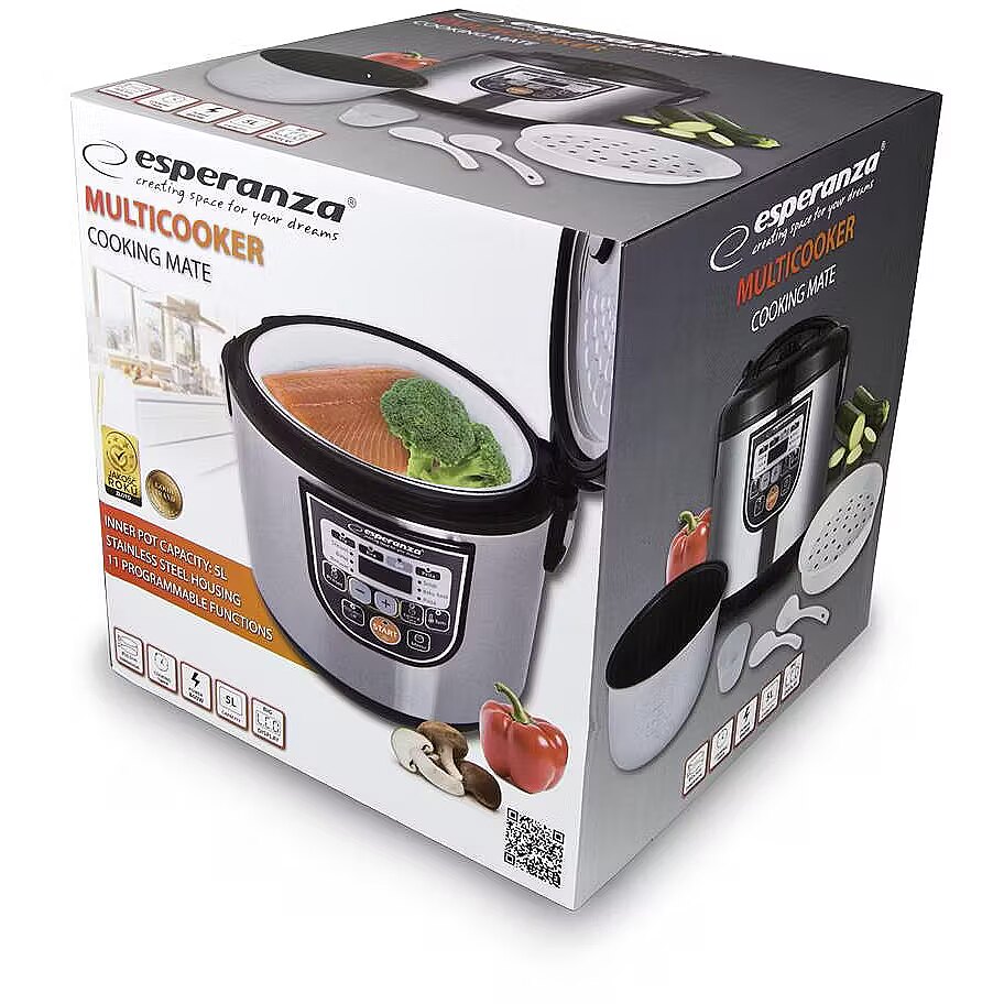 Description - Esperanza Multicooker is a great helper in the kitchen and offers numerous benefits. It contains many cooking functions such as: electric pan, deep fryer, food steamer, and cake and bread baker. The devise is energy saving, limits space in the kitchen and takes much less cooking time. Thanks to the simple and intuitive LCD display, it's easy to configure the functional programs and adjusting the cooking time. With our multicooker you can prepare all your favorite dishes faster and healthier! Bon Appetit!
