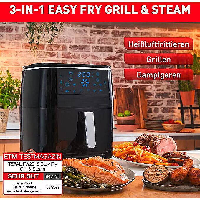 Name LV - Karstā gaisa friteris,Tefal 3in1 EASY FRY GRILL & STEAM XXL 6,5L