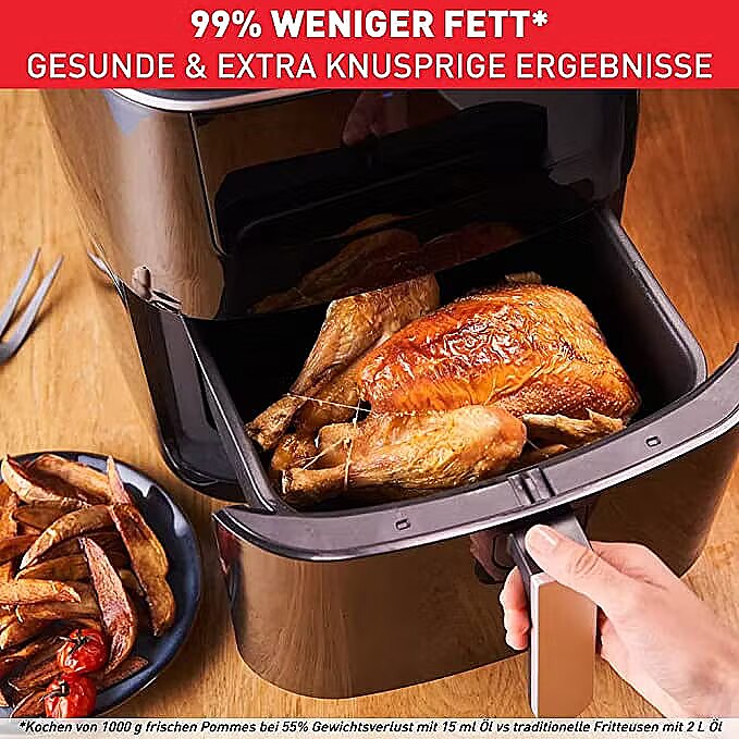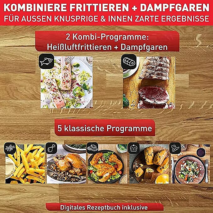 Kuuma õhuga frittimine, grillimine ja aurutamine – kõik sama seadmega! Naudi lõputuid tervisliku toiduvalmistamise võimalusi, mis meeldivad kogu perele. Kõik ühes masinas, mis säästab Sinu köögis ruumi. Eriti krõbe