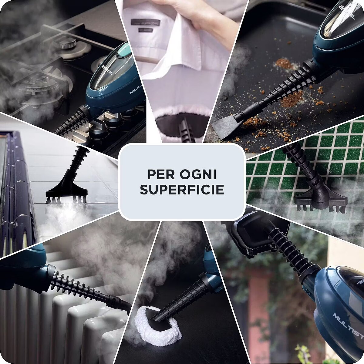 LongDesc - Steam Mop 10 in 1 is the light and versatile steam mop that shakes up the deep cleaning.Thanks to the high-temperature steam, Steam Mop 10 in 1 is unique in deep cleaning of each corner of the house. It is ideal for:●Sanitizing floors and carpets●Removing stubborn dirt and grease from cooking hobs●Cleaning sanitary fittings perfectly●Refreshing the grout lines among the tilesFurthermore, the steam sanitizes and refreshes fabrics and sofas, eliminating bad smells, too.Steam Mop 10 in 1 is ready in a few seconds and generates continuous and constant steam for about 18 minutes. The removable tank is easy to refill under the tap. The product is not just a steam mop; thanks to its several attachments supplied, it becomes 10 different steam cleaners.
