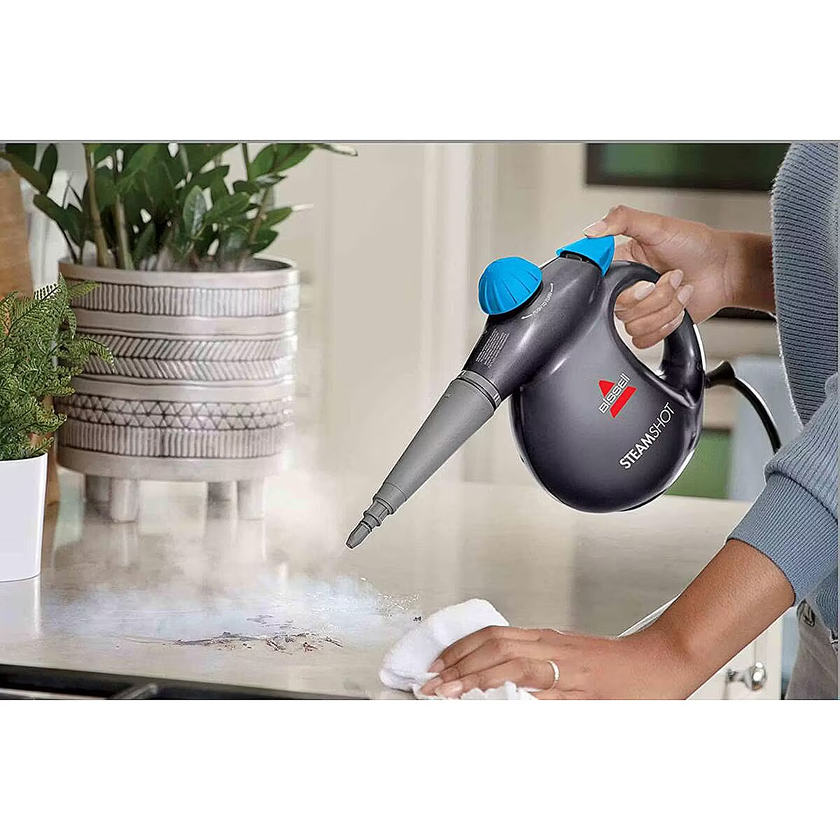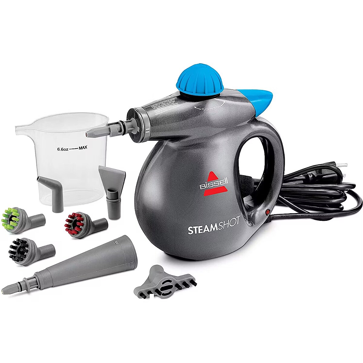 LongDesc - SteamShot- Powerful high pressure handheld Steam CleanerUse this steam cleaner to remove stubborn dirt and grime from many different surfaces around your home: kitchen, bathroom and much more.BISSELL's Steam Shot gives you a chemical-free deep clean using only tap water with the power of steam in a hand held unit, eliminating bacteria around your home. Powerful steam cleaning unit with 1000 watts generating 4.5 bar pressure, and 15 minutes cleaning time using the steam on demand trigger you can provide steam wherever you need it. This multi-purpose product includes multiple tools for many different tasks.- Powerful high pressure handheld Steam CleanerBreakdown grime and grease with the power of steam in a hand held unitVarious tools for cleaning kitchens, grills, bathrooms, grouts, windows and morePowerful hand held steam unit with 1000 watts generating 4.5 bar pressureChemical free cleaning – use tap water to give you a deep clean on all surfaces to help eliminate germsSteam on demand trigger with built-in safety feature – to provide steam wherever you need it around your homeTools included: pouring jug, extension hose, detailed brush kit with 3 color coded brushes, angled concentrated tool, window squeegee, flat pad, flat scraping tool, 2 microfiber cleaning cloths, accessory nozzle