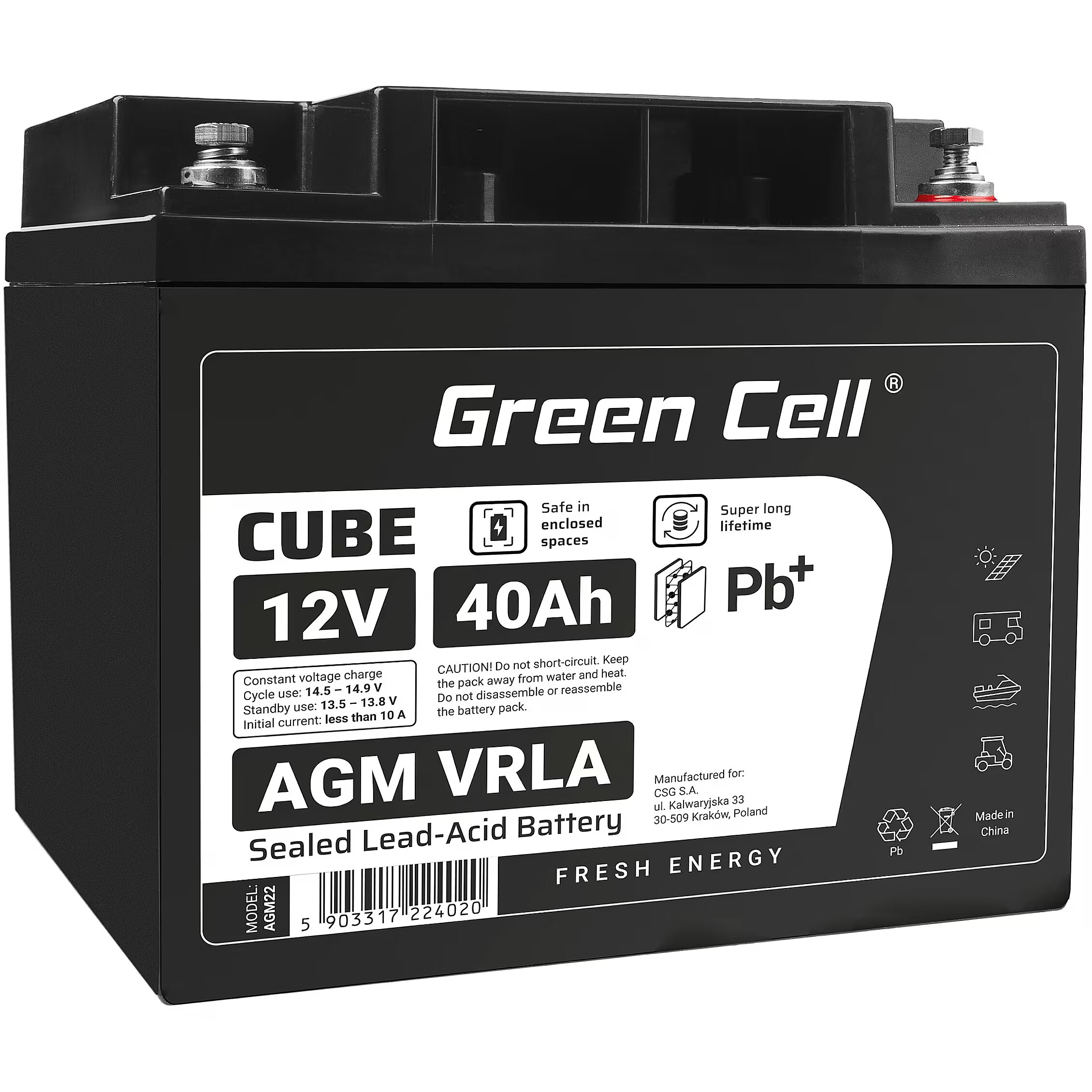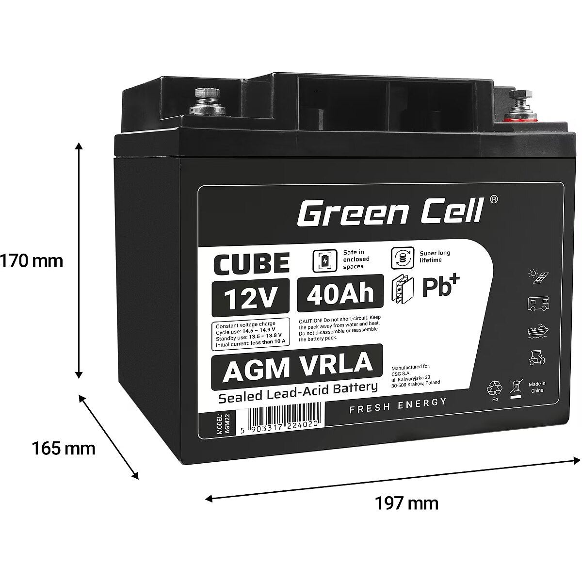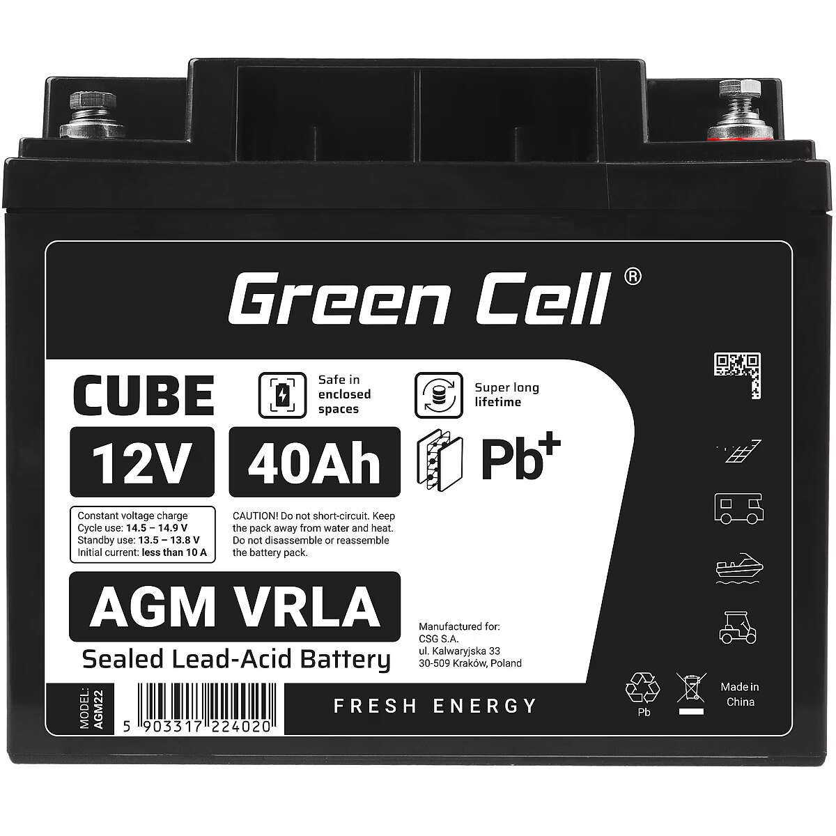 Green Cell CUBE AGM IP54 12V 40Ah VRLA Battery Gel deep cycle scooter mower boat barge mower tractor fishing boat
