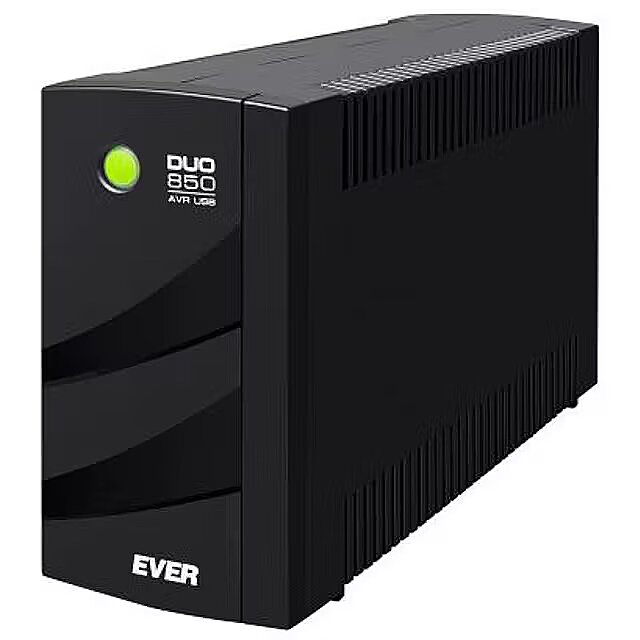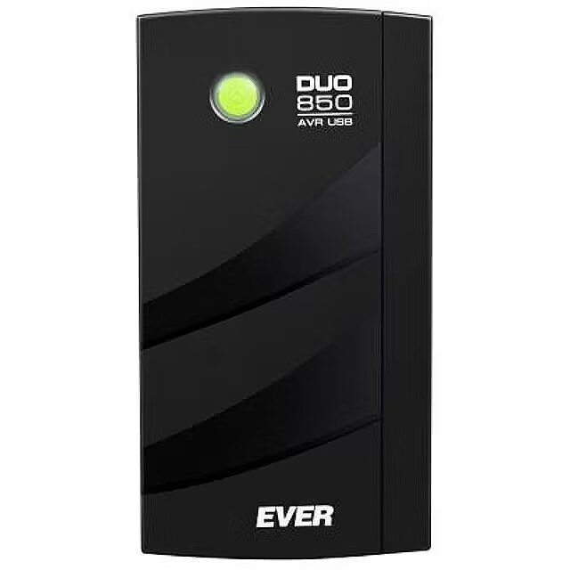 Description - DUO AVR USB series UPS power supplies are the perfect protection for devices in the office and at home. They protect connected devices against voltage drops and outages in the network, ensuring their longer and more reliable operation. The main purpose of DUO AVR USB series power supplies is: PC computers, telecommunications devices (switches, routers), monitors, and fiscal devices. The offered series of power supplies is equipped with a HID USB communication interface, which allows the UPS to cooperate with other devices without the need to install software. Additionally, thanks to the proprietary PowerSoft software, it is possible to monitor and configure the DUO AVR USB power supply. Free Software provides the User with information about the UPS operating mode, its load, battery charge status and autonomy time. The built-in AVR automatic mains voltage regulation system (increasing and decreasing) allows the adjustment of incorrect input voltage to a level acceptable by the receivers, without consuming energy from the batteries. The system implemented in the power supply enables automatic restart of the UPS after the batteries are discharged and after the supply voltage returns, and the "cold start" function enables starting the UPS without the mains power connected. Automatic mains voltage regulation system (increasing and decreasing AVR) Short-circuit and overload protection 6 IEC320 C13 sockets Automatic fuse Cold start - possibility of starting the UPS without the mains power connected HID USB communication interface Free PowerSoft monitoring and management software (available for download from: www.ever.eu/powersoft)