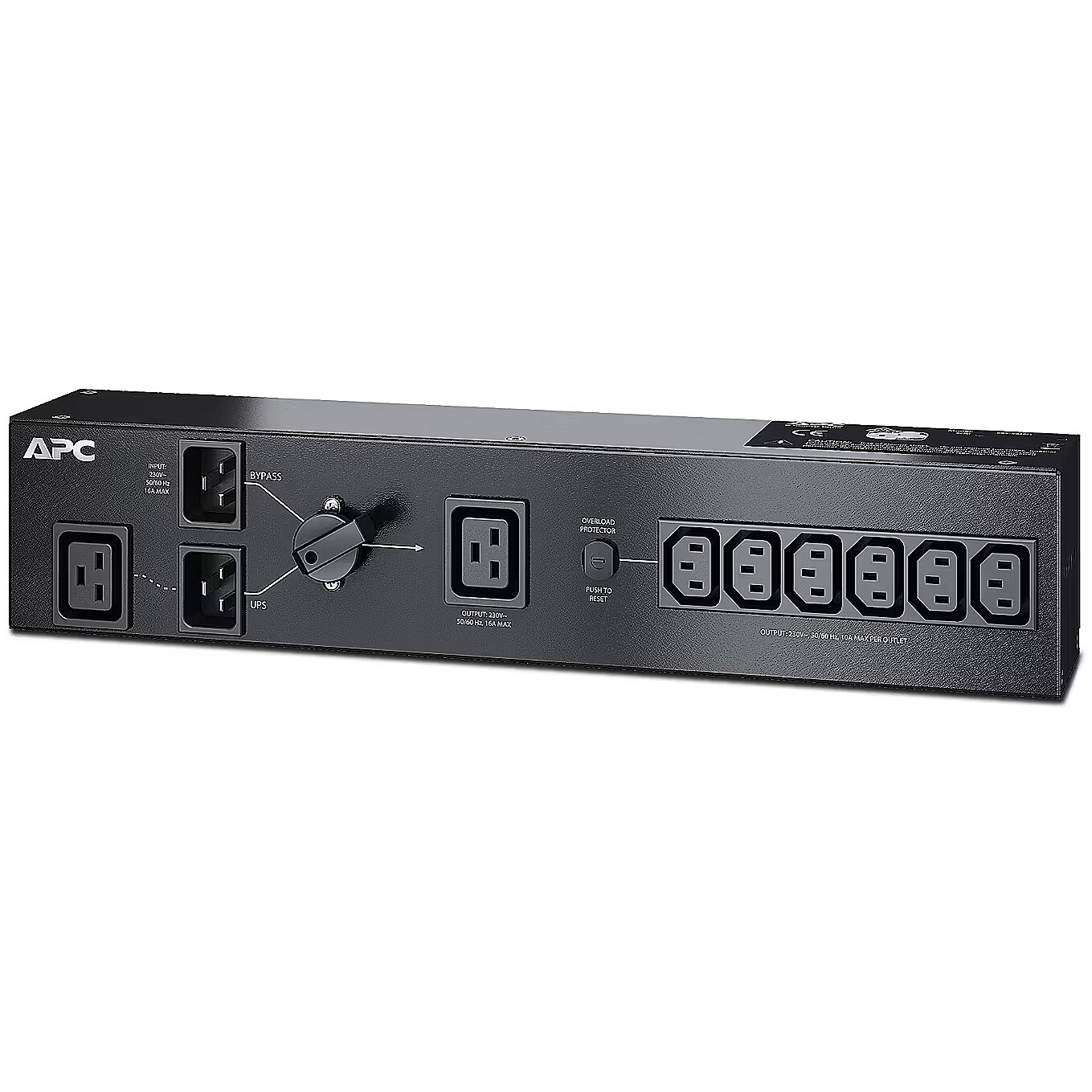 ShortSummaryDescription - APC Service Bypass PDU 230V 16AMP W/ (6) IEC C13 And (1) C19, RoHS, VDE, REACH, 0 - 40 °C, 0 - 95%, 432 mm, 76 mm