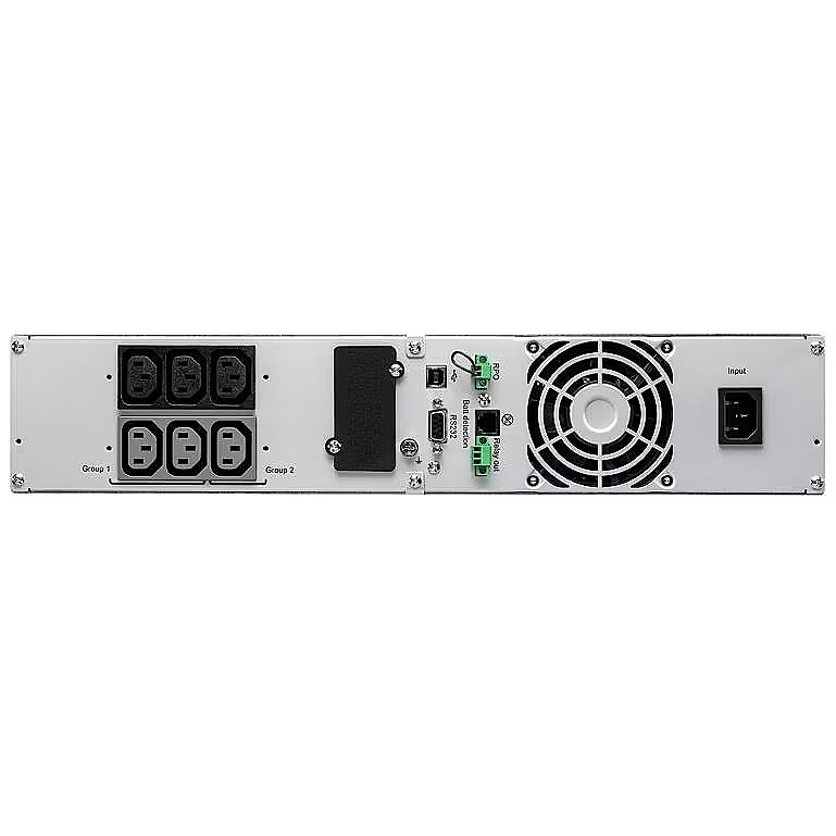 Description - Double conversion UPS online, 2U Rackmount, 1000 VA / 900 W, multilingual LCD display, energy meter, 6 IEC 10 A sockets (2 manageable groups), optional management board slot, USB and serial ports, potential-free contacts, RPO connector , power management software compatible with the virtual environment, batteries replaceable during operation, long emergency response time with four optional EBM modules, all accessories for mounting in the rack Rack in the set.
