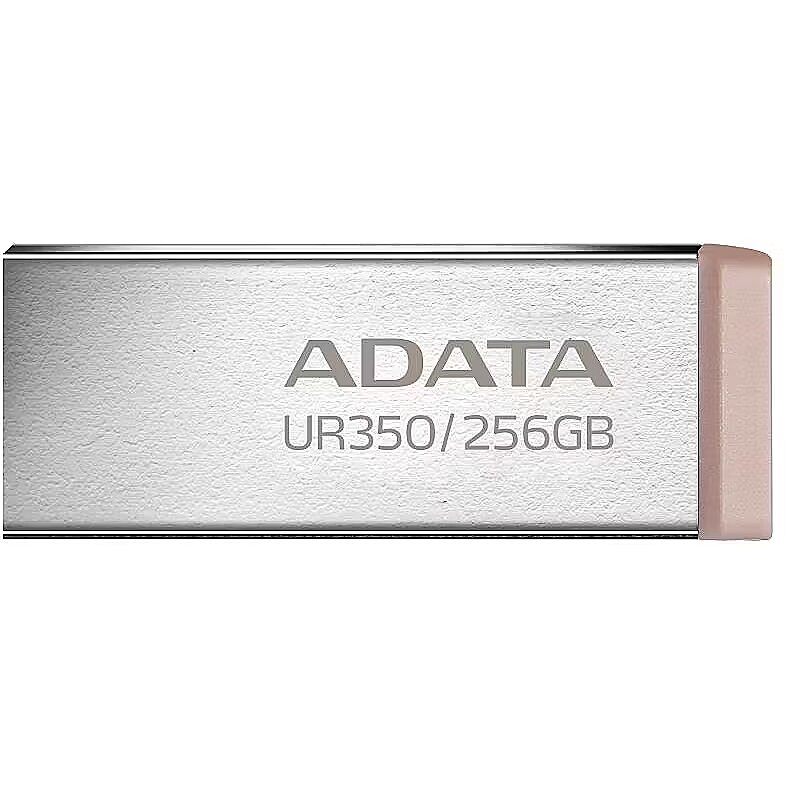 LongSummaryDescription - ADATA UR350. Capacity: 256 GB, Device interface: USB Type-A, USB version: 3.2 Gen 1 (3.1 Gen 1). Form factor: Capless. Weight: 3.5 g. Product colour: Brown, Stainless steel