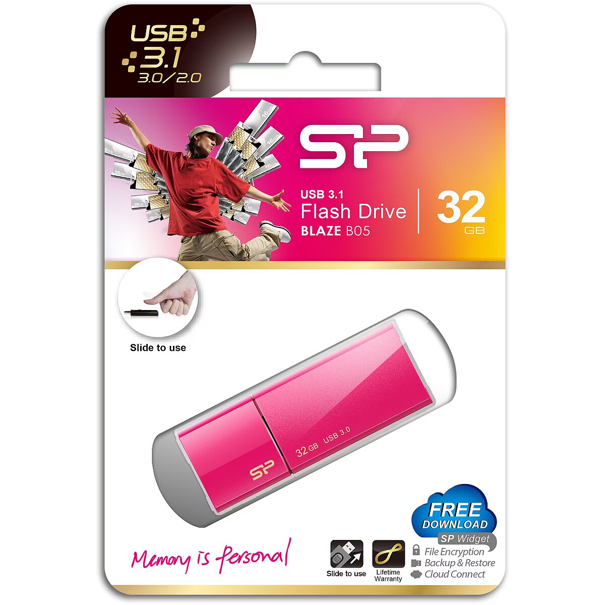 Silicon Power Blaze B05 mälupulk kasutab SuperSpeed USB 3.1 Gen 1 ühendust, mis võimaldab ülikiiret andmeedastust. See on kuni 10 korda kiirem, kui vana USB 2.0 ühendus – 5 Gbps. Niimoodi säästad aega suurte andmemahtude kopeerimisel mälupulgale või mälupulgalt arvutisse. SuperSpeed USB 3.1 Gen 1 liides Ergonoomiline disain – lihtsam kasutada Korgivaba disain – ära muretse kaduma läinud korgi pärast LED indikaator – lihtsalt aru saadav, mil andmeedastus toimub SP Widget allalaetav tarkvara pakub seitset tagavarakoopia ning turvafunktsiooni