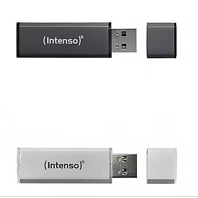 Description - 2x 32 GB Anthracite + Silver Aluminium Data memory in elegant aluminium design An important presentation at the university is lined up and you’re meeting for team work? Store the achieved results and final presentation on the reliable Alu Line from Intenso. The high-quality housing of aluminium in anthracite or silver gives a professional impression, yet it is light and robust.