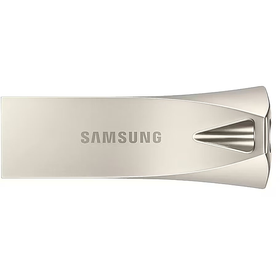 LongDesc - Pack it all inPlenty of room for the peace of mind you need. With storage capacities ranging from 64GB to 512GB[1] , you'll have space to store up to 170,251 photos or a full 24 hours of 4K video[2] , whichever suits your preference.Speed for any occasionHave your files ready right when you need them. BAR Plus transfers 4GB files in just 9 seconds[3] with sequential read speeds of up to 400 MB/s,[4] supported by the USB 3.2 Gen 1 standard. It's also backward compatible, allowing you to connect it to any USB 2.0 port.Flair in every movePairing a minimalistic, elegant design with a robust metal body, BAR Plus not only performs exceptionally but also looks good. The integrated keyring loop makes it easy to carry wherever you go, seamlessly blending style with practicality.Connect with confidenceWherever you go and whatever device you use, BAR Plus enhances efficiency with its extensive compatibility. Whether saving files on an office PC, playing videos on your home TV, or enjoying your favourite playlist in the car on the move, it gets the job done swiftly and reliably.Tough & TrustedFiles stay secure, anywhere you go. Samsungs flash memory technology makes the BAR Plus a trustworthy drive to store your valuable data. It offers protection against water[5] , shocks[6] , magnets[7] , temperature fluctuations[8] and X-rays[9]. Plus its backed by a 5-year limited warranty.Samsung Magician softwareUnlock the full power of BAR Plus with Samsung Magician software - a user-friendly suite of management tools that facilitates optimal USB flash drive performance. Verify product authenticity, monitor drive health, and benchmark performance.Bringing innovations to lifeFor decades, Samsungs NAND flash memory has powered groundbreaking technologies that have changed every part of our daily lives. This NAND flash technology also powers our USB flash drives, making room for the next big push of innovation.Fast transfer speedsDelivers sequential read speeds of up to 400 MB/s through its USB 3.2 Gen 1 interface, transferring 4GB files in a mere 9 seconds.Wide compatibilityCompatible with PCs, Macs, smart TVs, and cars via USB Type-A ports for seamless save, transfer, and play across devices.Reassuring reliabilitySafeguards data from water, extreme temperatures, x-rays, magnetic fields, and shock, making it well-suited for on-the-go usage.