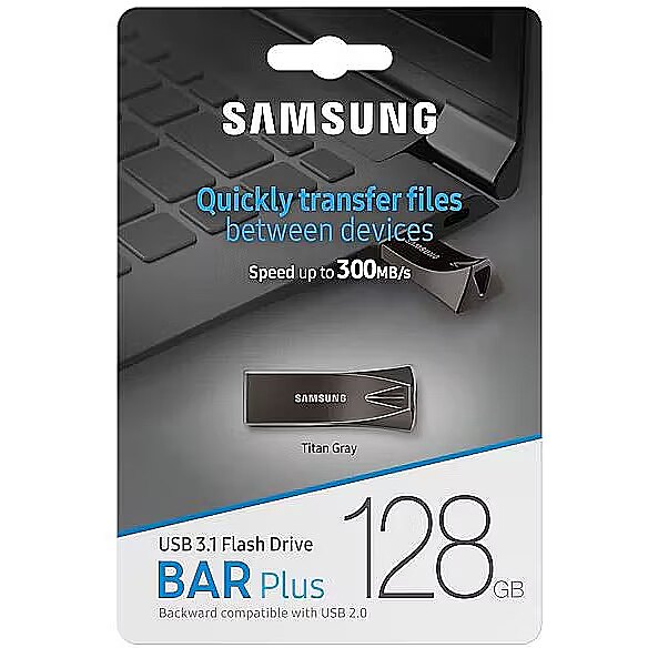 URL - https://www.samsung.com/uk/memory-storage/usb-flash-drive/usb-3-1-flash-drive-bar-plus-128gb-titanium-gray-muf-128be4-apc/