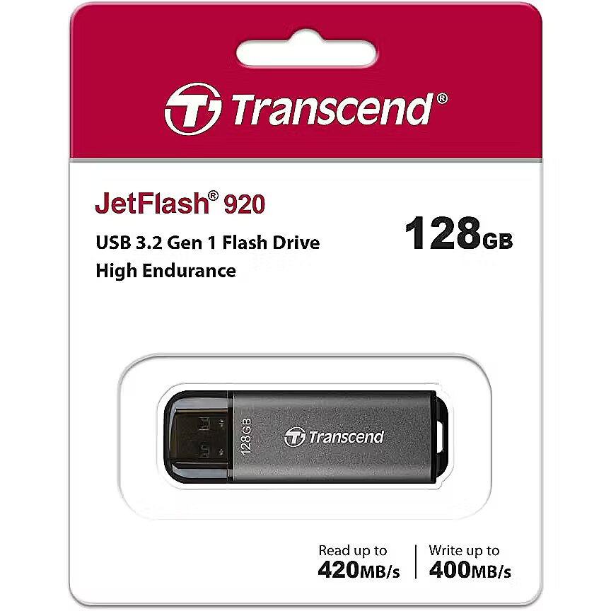 Description - JetFlash 920 Introducing Transcend's high endurance, high performance JetFlash 920, a USB flash drive that is anything but ordinary. Boasting sensational read speeds of up to 420MB/s and write speeds of up to 400MB/s, the JetFlash 920 delivers top-notch performance in a sleek and portable design. Its aluminum metallic housing will safeguard your data wherever you go.