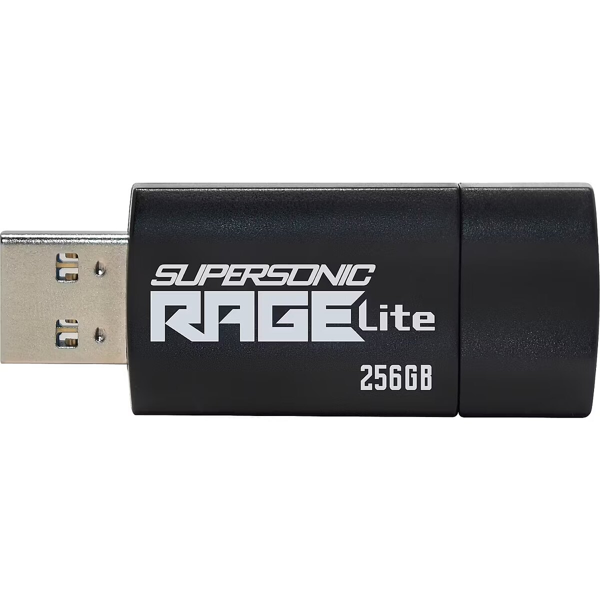 Technical_details - Supersonic Rage Lite 256GB USB Stick The Patriot Supersonic Rage Lite is the ideal solution for anyone looking for a lightweight, portable USB flash drive with fast transfer speeds. The stick features a high-quality NAND and IC controller that offers excellent performance when transferring large files. The rugged case features a retractable, capless design with an eyelet attachment for maximum data protection and portability, as well as easy plug-and-play functionality. Type: USB stick Colour: black/blue EAN: 0814914028971 Manufacturer No.: PEF256GRLB32U Series: Supersonic Rage Lite Capacity: 256GB Connection: USB-A 3.2 Gen 1 (5 Gbps) Connection: The designation USB 3.2 Gen 1 corresponds to the former designation USB 3.1 Gen 1 / USB 3.0. Speed: Read: 120MB/s Features: Sliders Compatible with: Linux, macOS, Windows 7, Windows 8, Windows 10 Feature: Eyelet for attachment Dimensions: Width: 21mm x Height: 10mm x Depth/Length: 55mm Weight: 10 grams