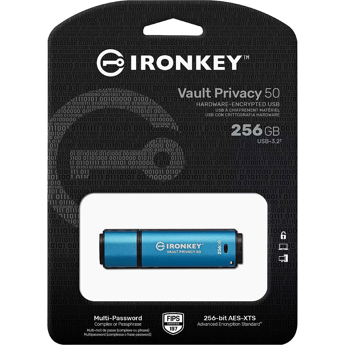 Kingston IronKey Vault Privacy 50, AES Encrypted, 256GB, Blue