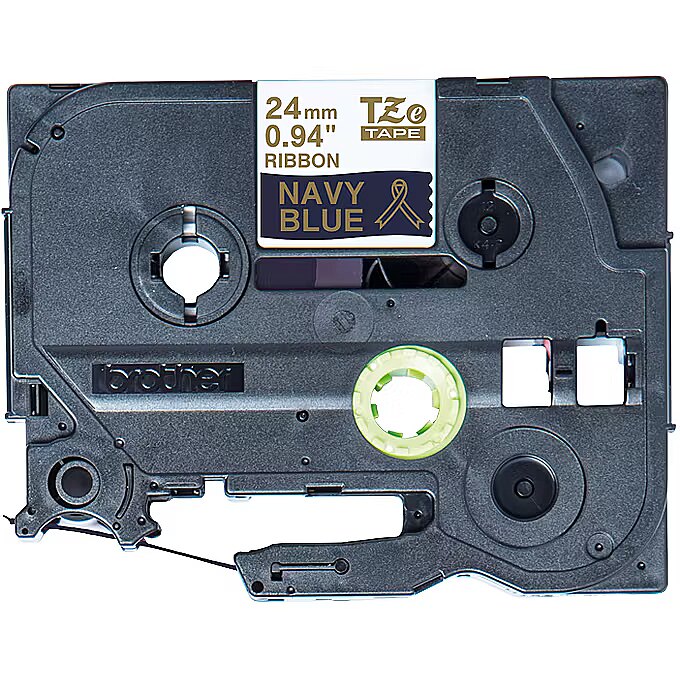Description - BROTHER TZE-RN54 P-TOUCH EMBELLISH GOLD PRINT ON NAVY SATIN RIBBON 24 MM, 4M