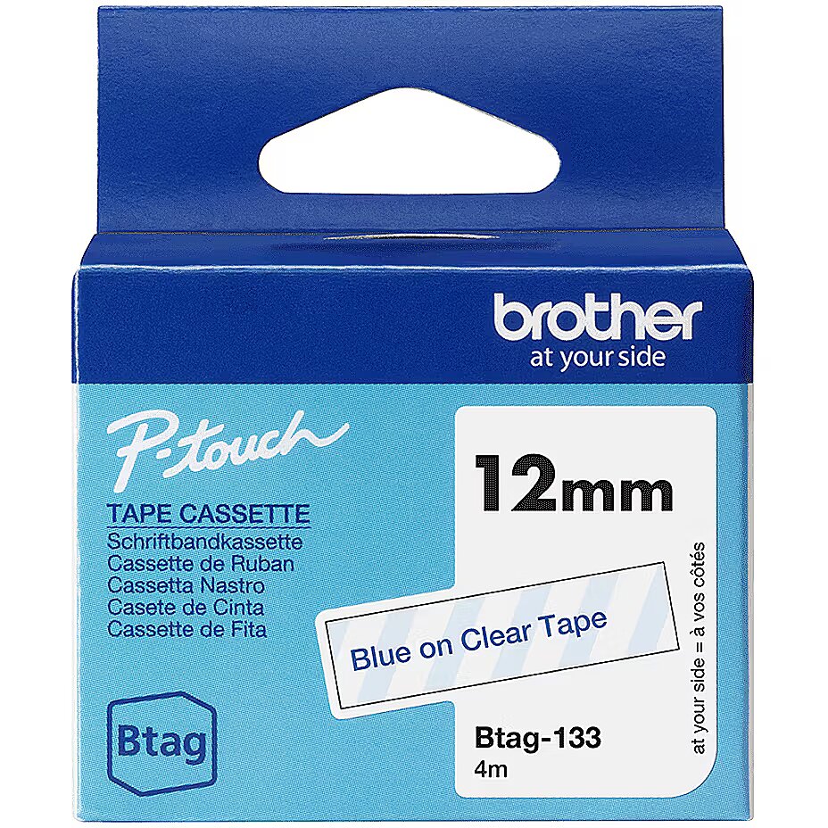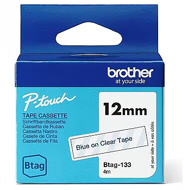 MediumDescription EN - The Brother P-touch Btag Blue on Clear Label Tape BTAG133 is a durable and versatile label tape exclusively compatible with Brother P-touch PT-N10, PT-N20, and PT-N25BT label printers. At 12mm wide, it’s perfect for creating personalized labels that are waterproof, fade-resistant, and withstand household conditions and temperature extremes.