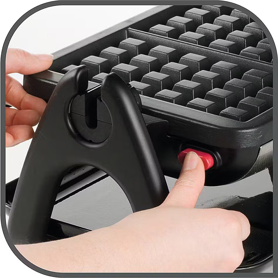 ShortSummaryDescription - Tefal WM756D, 2 waffle(s), Rectangular, Black, Stainless steel, Stainless steel, 1200 W, 10 cm
