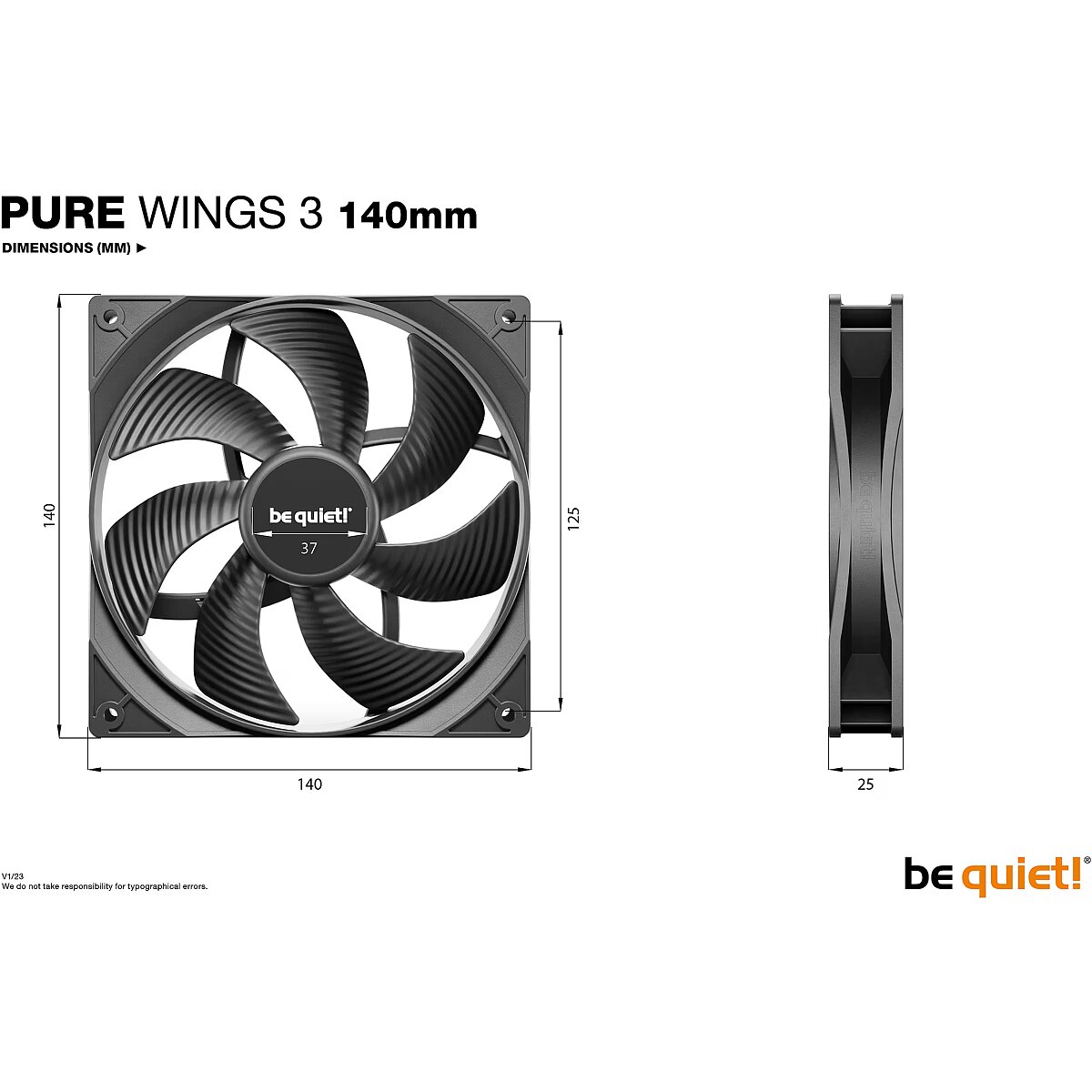 ShortSummaryDescription - be quiet! Pure Wings 3 140mm, Fan, 14 cm, 1200 RPM, 97.5 m³/h, Black