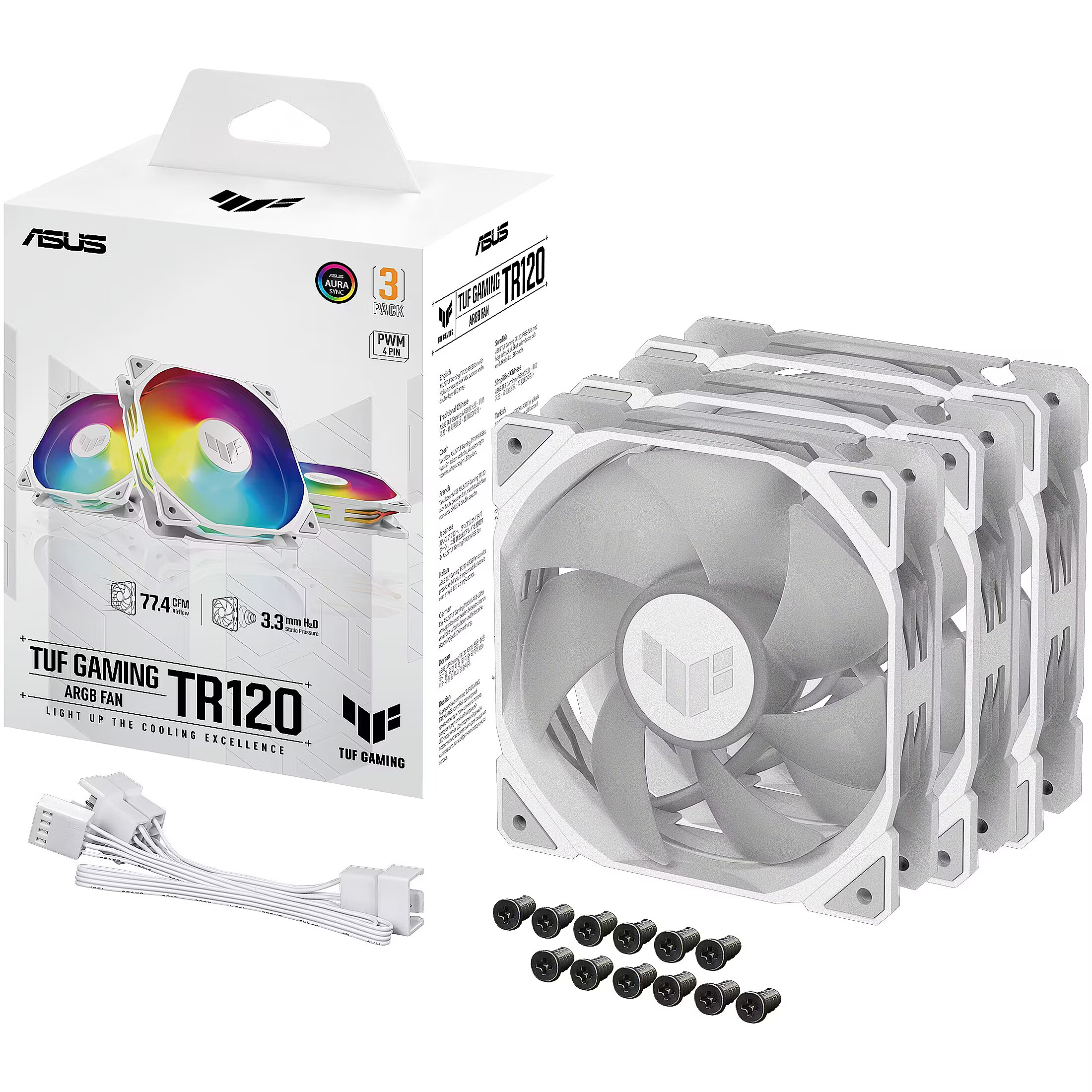 name - ASUS TUF Gaming TR120, PWM ARGB Lüfter 3er Pack - 120mm, weiß