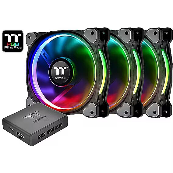 Thermaltake łączy opatentowane, wspaniałe podświetlenie LED z najnowocześniejszą technologią, aby zapewnić zupełnie nowe wrażenia podczas korzystania z chłodzenia komputera. W zestawie znajdują się trzy wentylatoy o wysokim ciśnieniu statycznym i średnicy 120 mm z opatentowanym pierścieniem LED o illuminacji 16,8 mln kolorów (12 kontrolowanych pojedynczych diod LED). Wentylator Riing Plus 14 RGB posiada łopatki kompresyjne, łożysko hydrauliczne i cyfrowy kontroler wentylatora, dzięki czemu może być kontrolowany przez opatentowane oprogramowanie TT RGB PLUS, jak również przez interaktywne sterowanie głosowe AI. TT RGB PLUS