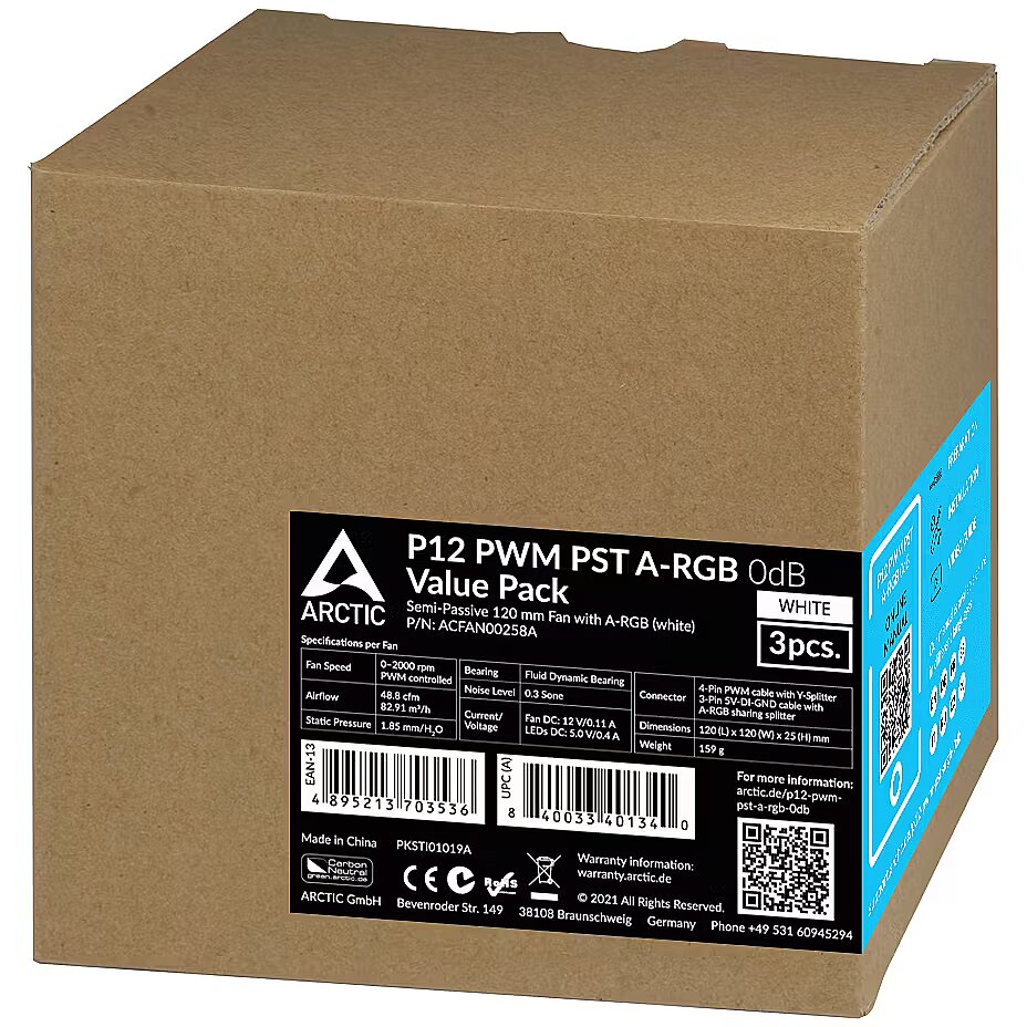 Title - ARCTIC P12 PWM PST A-RGB 0dB - Semi-Passive 120 mm Fan with Digital A-RGB in white and Value Pack