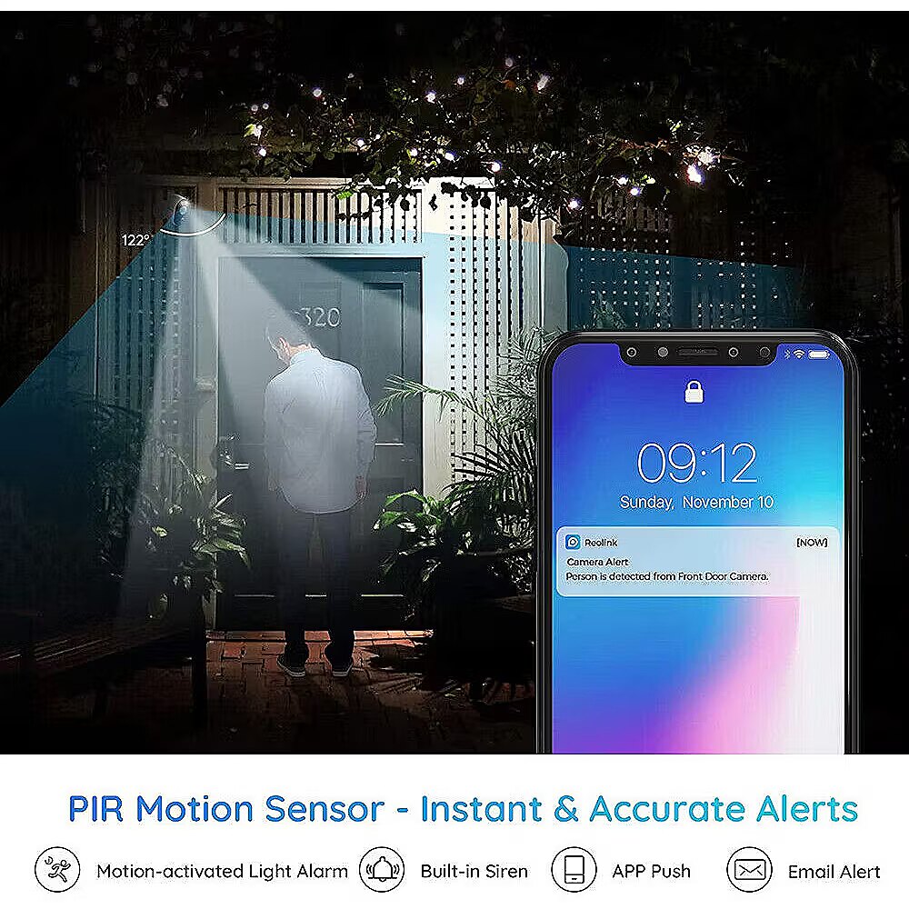 Use a microSD card (up to 128GB) for local storage and later playback. You can also choose to store event videos in Reolink Cloud. Encrypted cloud storage takes care of your data security. Get Instant & Accurate Motion Alerts