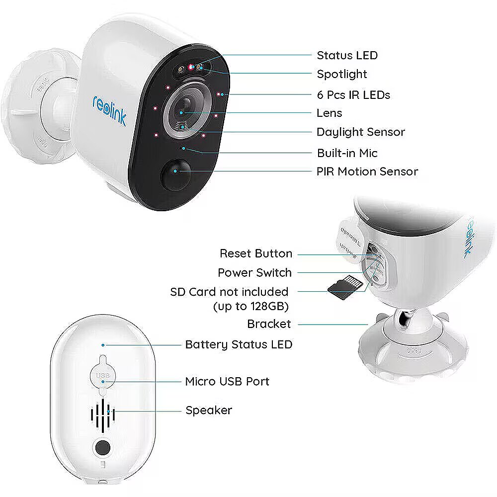 Title - Reolink Argus Series B330 - 5MP Outdoor Battery Camera, Person/Vehicle Detection, Color Night Vision, 5/2.4 GHz Wi-Fi