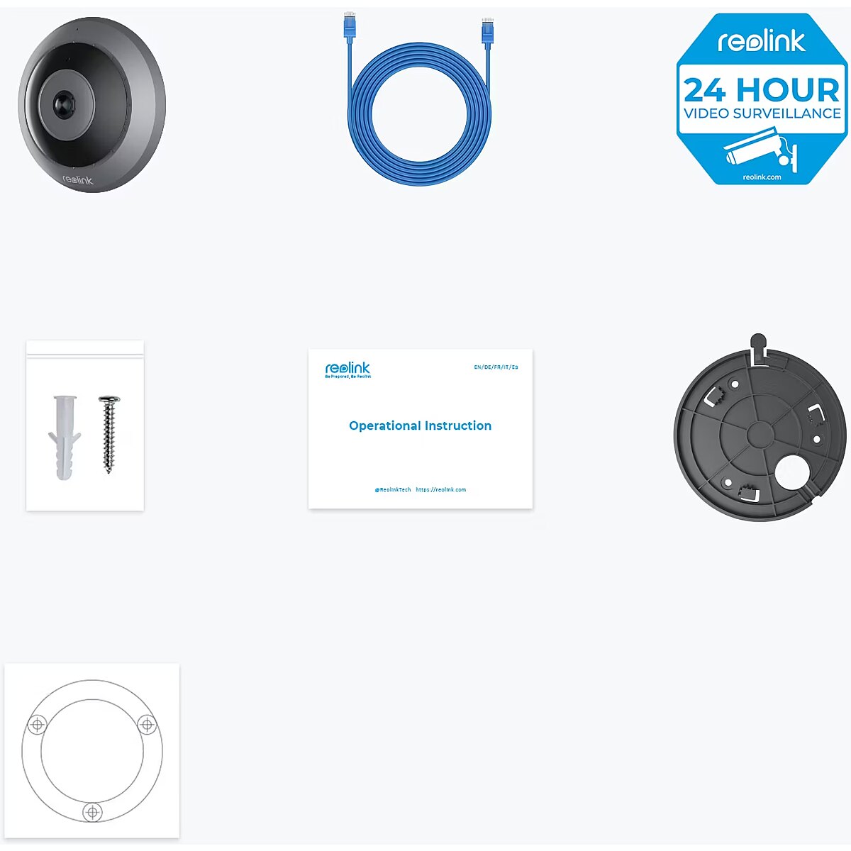 ShortSummaryDescription - Reolink Fisheye Series P520 - 6MP Indoor Fisheye PoE Camera, 360° View, Multiple Display Modes, Person Detection, IP security camera, Indoor & outdoor, Wired, Google Assistant, Ceiling/wall, Grey, Black