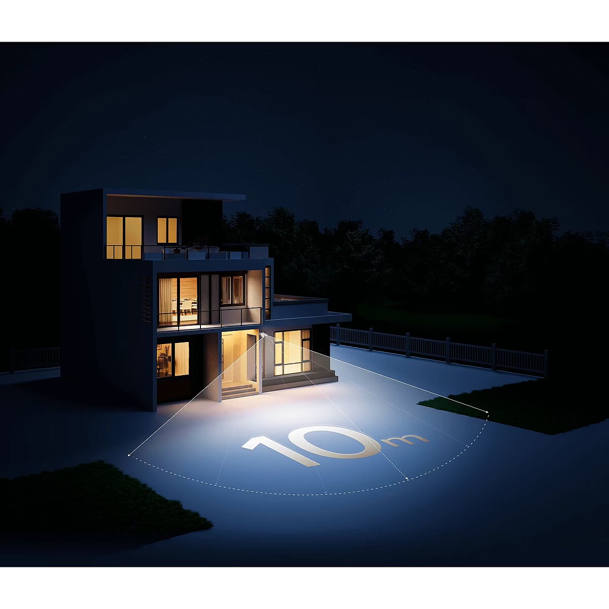 High-power infrared + full-colour LED added support for brighter light and larger illuminated area. Detects ambient light levels to illuminate in low light intelligently and boasts clear night vision within 10 metres, so visitors or thieves can be identified at a glance. Black and white night vision. When set to black and white night vision mode, infrared fill-in is employed in low-light shooting conditions. Full-colour night vision. When set to colour night vision mode, white light fill-in is utilised in insufficient lighting situations. Super large battery capacity for 180 days of worry-free recording