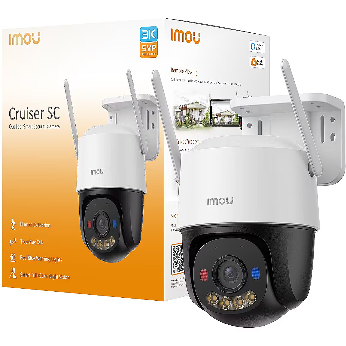 LongDesc - Cruiser SC3K UHD Image | Blue & Red Warning LightSmart Full-color Night Vision | Supports Wi-Fi 6 ConnectionSee the world in 3KCruiser SC delivers 3K UHD high resolution so you won't miss a single detail.Stronger deterrent for intrudersCruiser SC is equipped with warning lights that emit red and blue light, which will protect your home from intruders by being more of a deterrent when an intruder is detected than a regular white light warning.Light the night up with smartnessCruiser SC can adjust different night vision modes according to your needs, whether you want the night vision to remain in full color all the time or want to turn on full color only when there is an event to save energy, it can always satisfy you.Smart modeThe camera will automatically turn into color mode from infrared mode when suspicious motion is detected.Full-color modeThanks to the built-in spotlights, your night vision is now turned up and in full color.Infrared modeAdvanced IR algorithm provide clear black-and-white pictures even in darkness.Off modeTurn off all night vision modes Infrared and spotlights are all turned off.Panoramic pan & tilt for 360° protectionCruiser SC supports 0°-355° pan and 0°-90° tilt to fully protect your home with a 360-degree view.More efficient human detectionCruiser SC will activate the video algorithm for person detection when motion is detected, ensuring efficient detection.Stay on targetThe detection algorithm of Cruiser SC continuously tracks moving objects in the frame, keeping the target in the frame at all times.Professional protection to weather any stormCruiser SC is able to against dust penetration and can easily handle rain and wind, keeping you safe around the clock.Connect your home from anywhereA built-in speaker and a microphone with the echo cancellation feature allow you to interact with family from anywhere.More stable connections with Wi-Fi 6Cruiser SC supports the latest Wi-Fi 6 standard, which can significantly increase transmission rates and make data transfer more stable and secure.Deter unwelcome visitorsCruiser SC keeps an eye on your house, when someone breaks in, the 110dB siren will turn on to deter the unwelcome visitor.Larger bracket for easier installationThe Cruiser SC has upgraded the bracket and increased its size to make it easier to install and to improve heat dissipation.- Quick introduction- Favorite point setting- Customizable detection zone- Protection scheduling- Bluetooth networking- Supports 512GB SD card storage- H.265 compression for longer recording- 0.3s instant notificationImou Protect - Level up your securityImou Protect is a subscription service that is able to empower your IMOU products with advanced cloud computing technology and upgrade your security experiences.