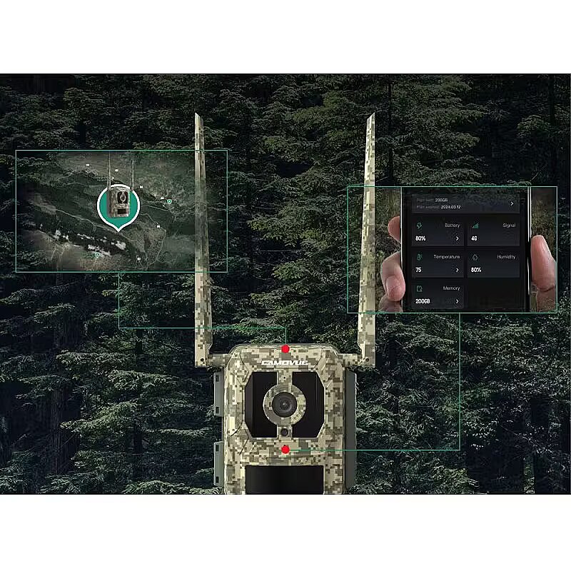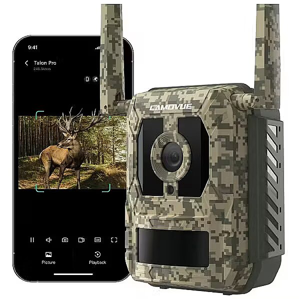 The Talon Pro’s built-in GPS helps you track its location, offering peace of mind against theft or loss in the field. Long-Lasting Power and Remote Setup Boost Battery Life. Extend your camera’s runtime with power-saving mode. The Talon Pro can operate up to 6 months without needing a recharge, making it perfect for extended wildlife monitoring. Flexible Charging Options. Power your Talon Pro with 10 AA batteries or combine a rechargeable battery with a solar panel for continuous, hassle-free operation. With solar power, you can "set it and forget it," eliminating the need for frequent battery changes in the field. Remote Setup Made Easy. Set up your Talon Pro from a distance using the Camovue App so that you can avoid disturbing the game in the field. Whether you're adjusting settings or checking the camera, everything can be done remotely without leaving your hunting spot. Tailored for All Wild Adventures